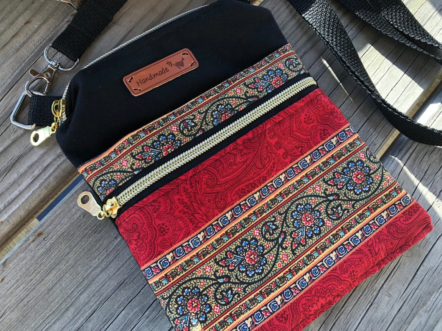 This is a versatile mini crossbody/ shoulder bag made with 10 oz black duck cotton canvas and Vintage French Floral Upholstery cotton fabric. The shoulder strap is adjustable to fit your desired length!