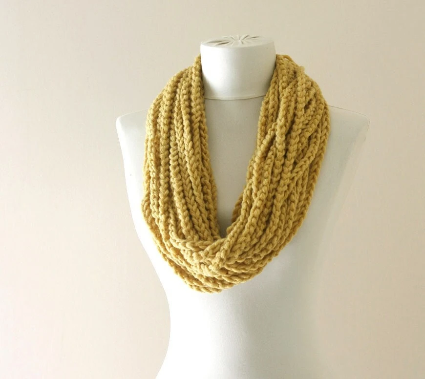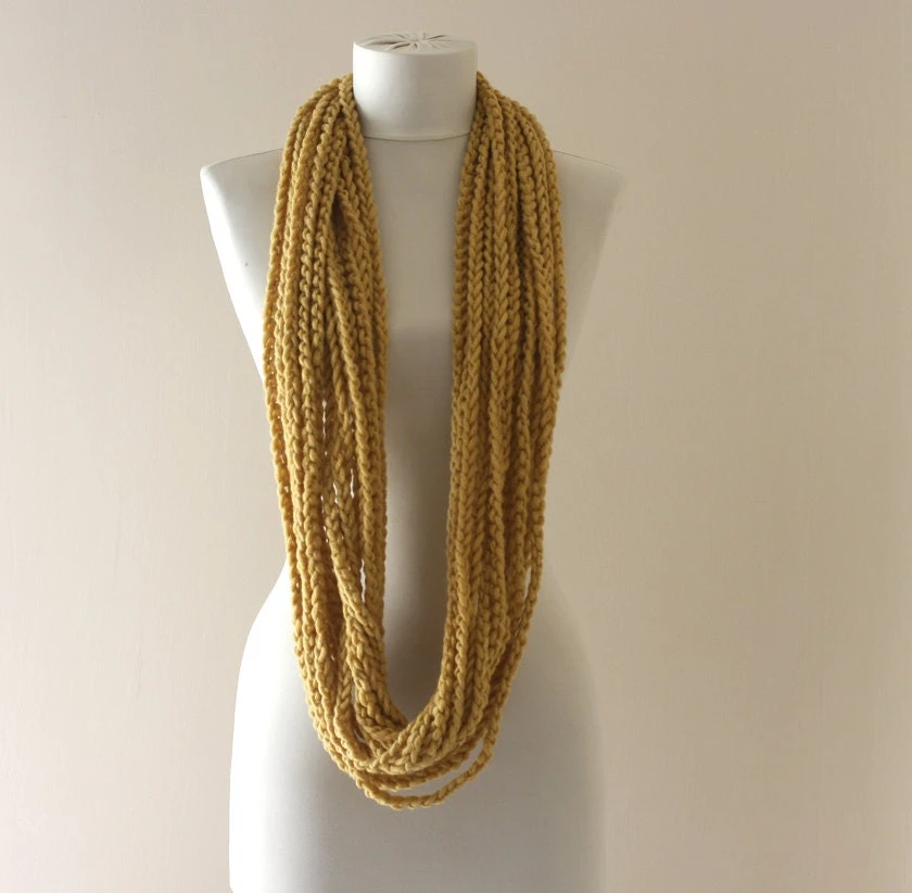 I crocheted this infinity scarf necklace with 50% wool 50% acrylic yarn. You can use it as a warm and long necklace, scarf or curl it to use it as a cowl.