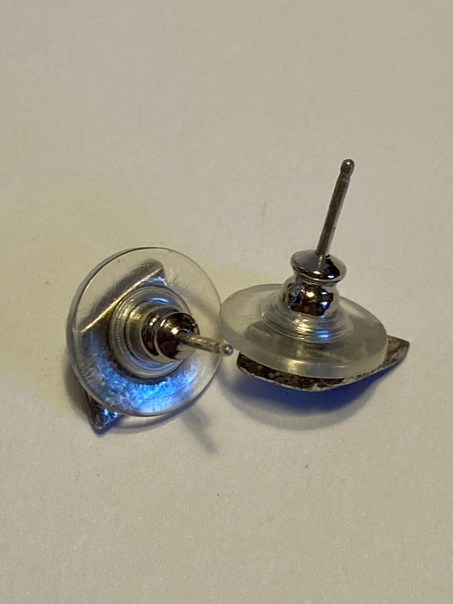 The earrings measure about 1/2″ by 3/8″. Their posts are about 1/2″ in length. The stones are vibrant and stunning in the workmanship.