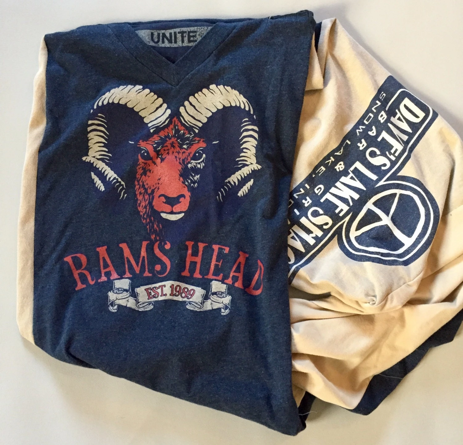 “Rich colored Ram’s Head logo combined with “Dave’s Lake Shack Snow Lake Indiana” logos.