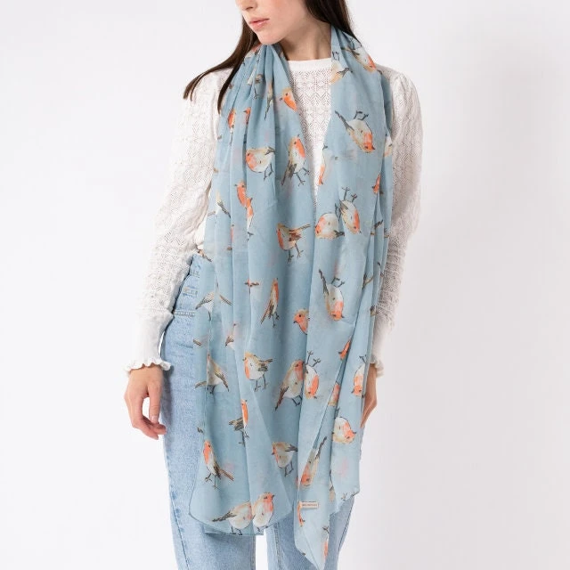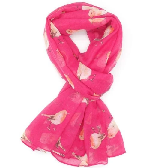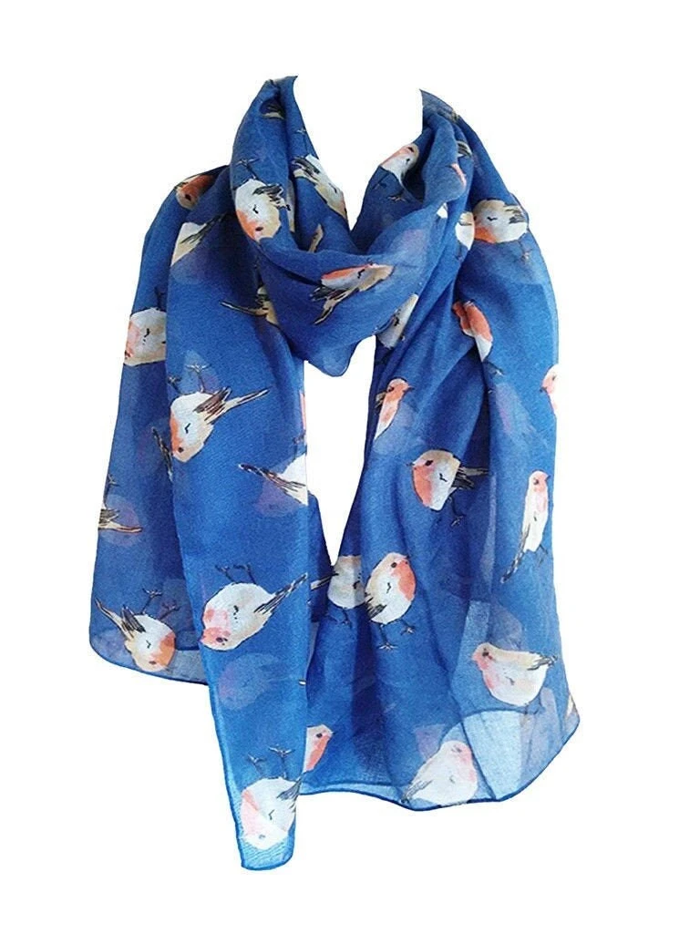 NEW Red Christmas Robin Bird Print Scarf Wrap