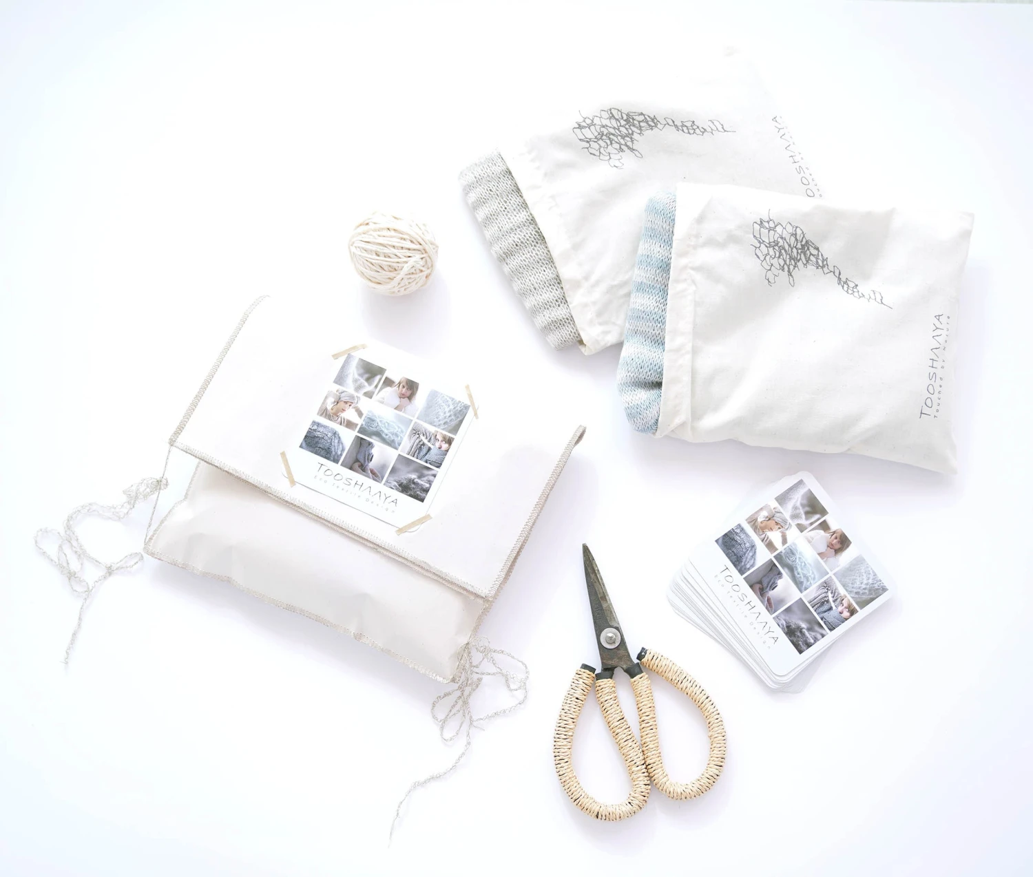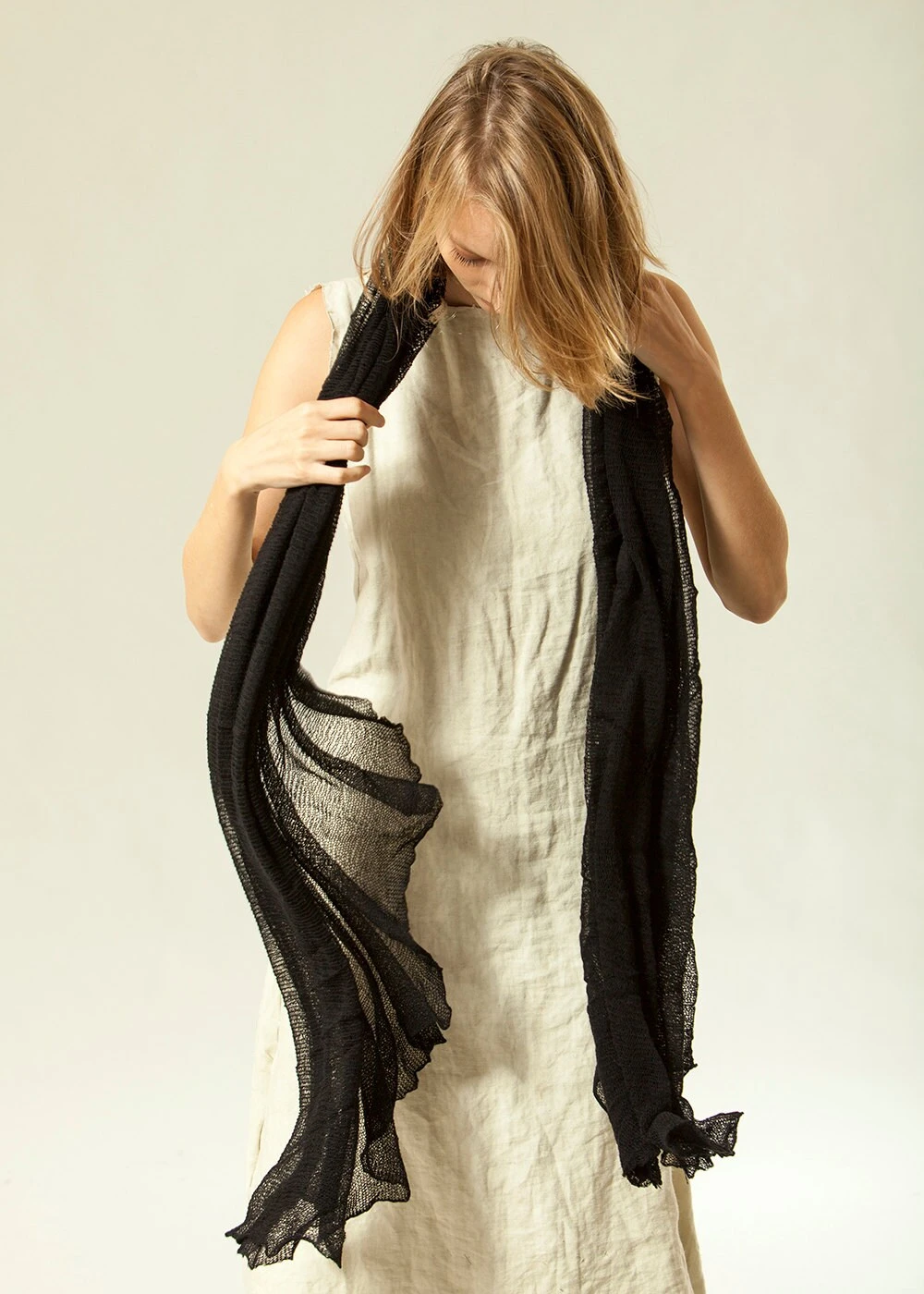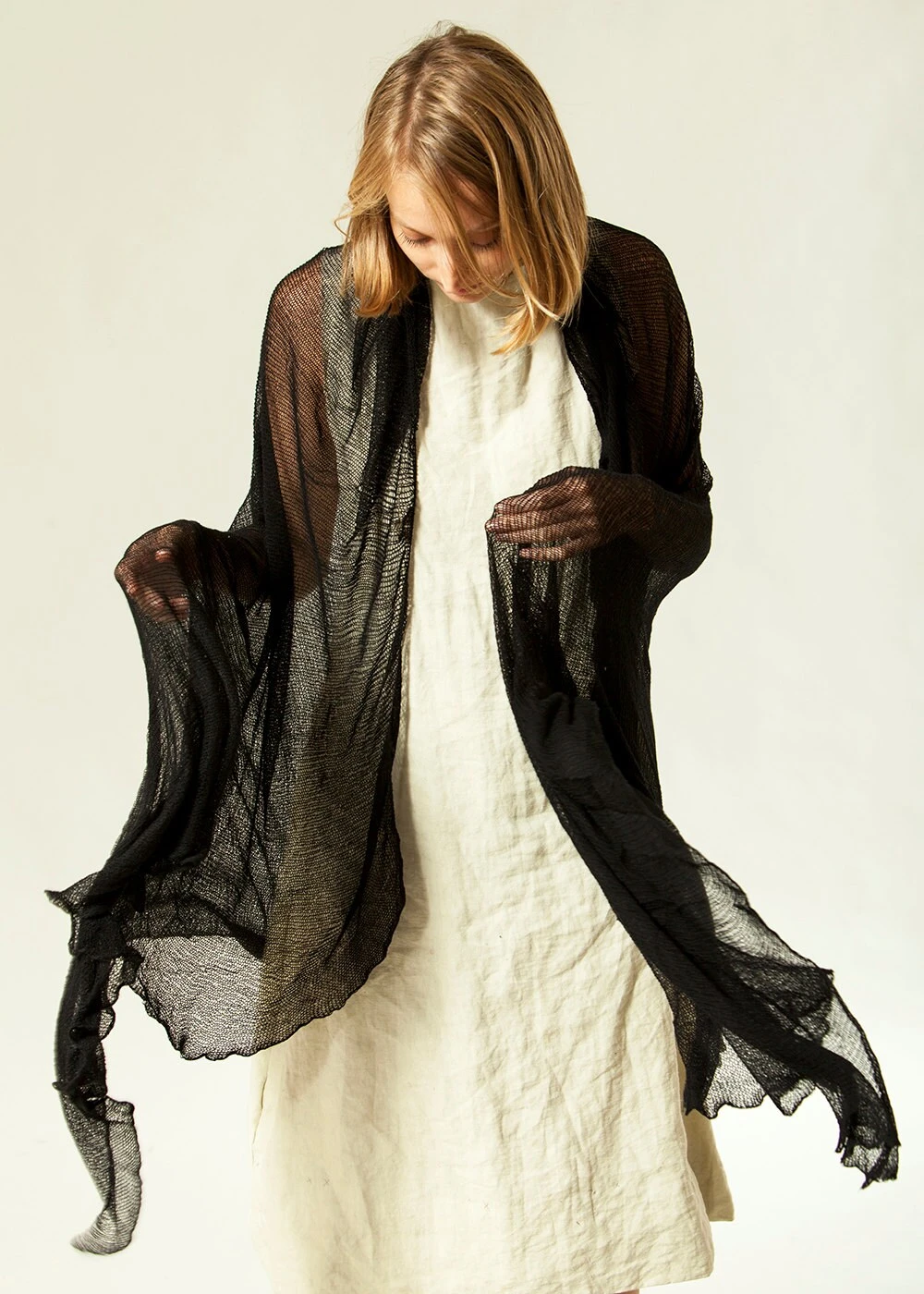 This neutral-hued, bohemian wrap scarf is light and luxurious, sumptuously soft and the perfect accessory for keeping cozy around the house or about town. Woven from 50% Cotton and 50% natural soy yarn – the vegan natural sustainable thread that is warm like cashmere, this piece embodies the organic aesthetic TOOSHAAYA is known for and wears like a second skin.