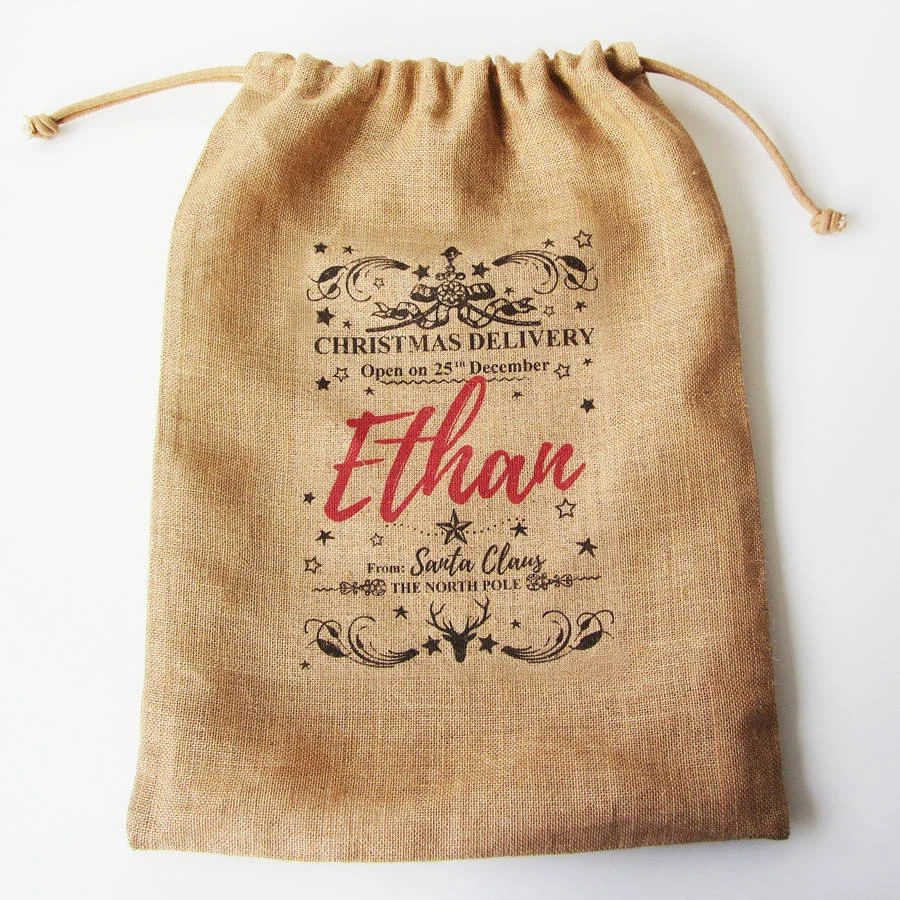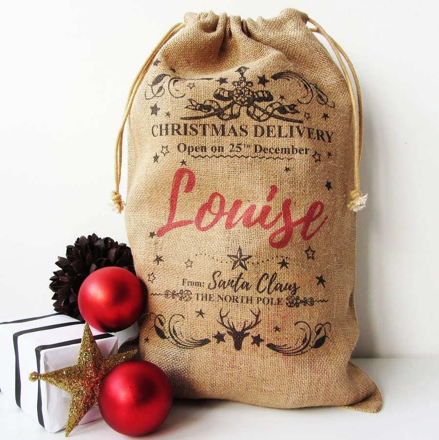 This Jute Christmas Sack is a wonderful way to help create magic on Christmas Morning. Perfect to use year after year.