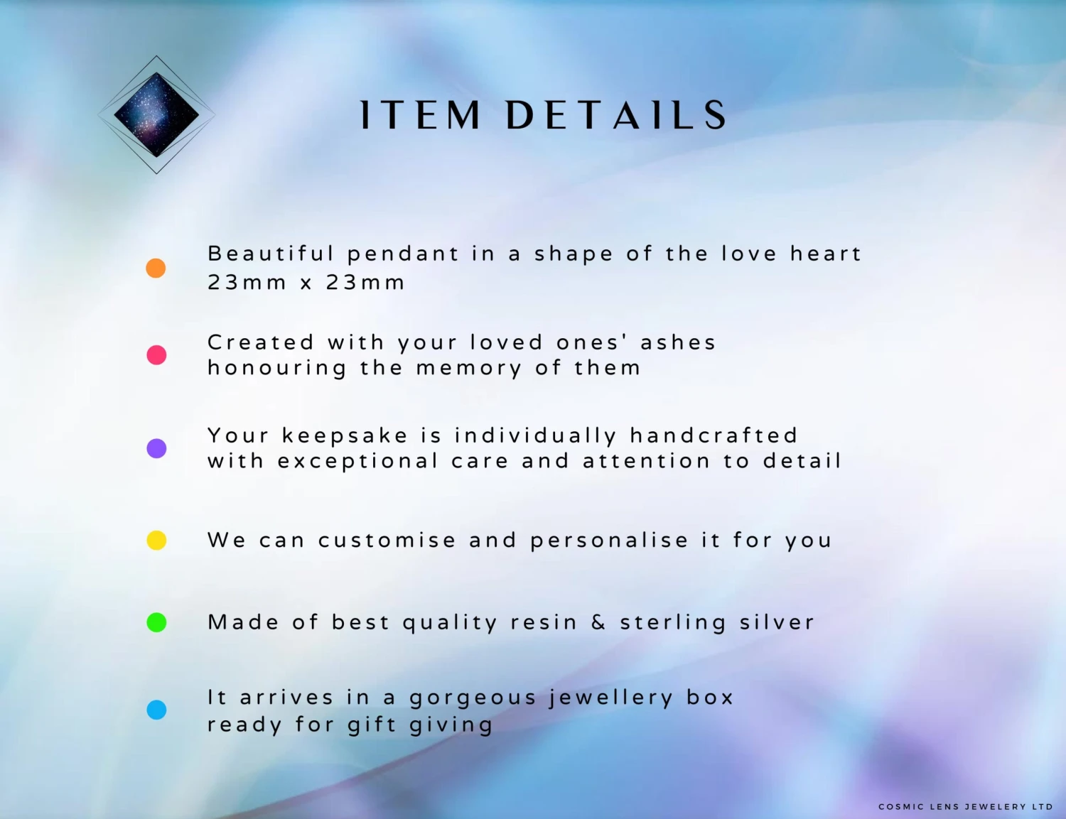 For cremation jewellery made with human ashes please visit our website: