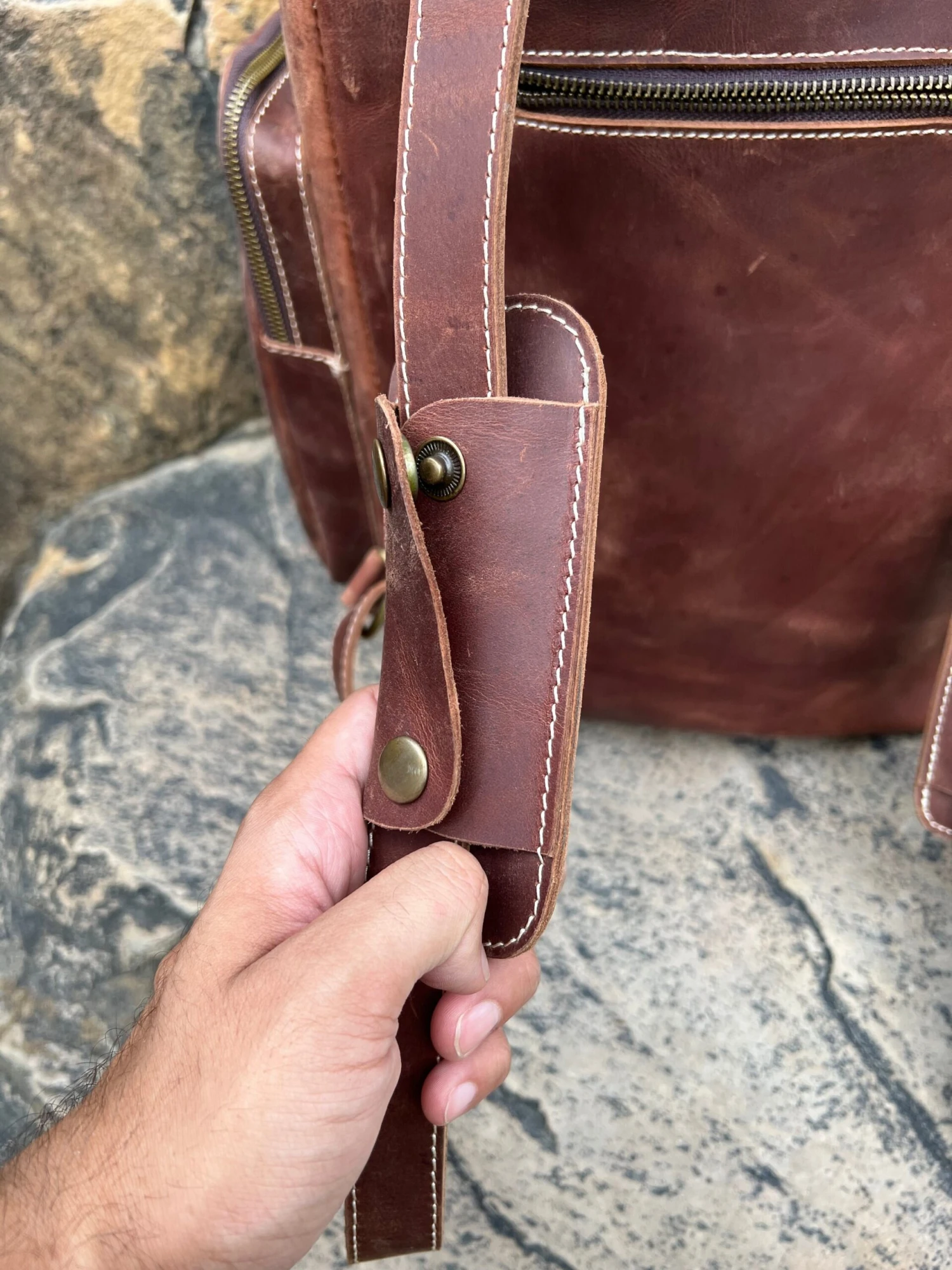 Materials: Genuine Leather, ykk zippers, Metal zippers, Waxes thread for stitching, Cotton lining, BRASS BUCKLES, BRASS PUSH BUTTONS