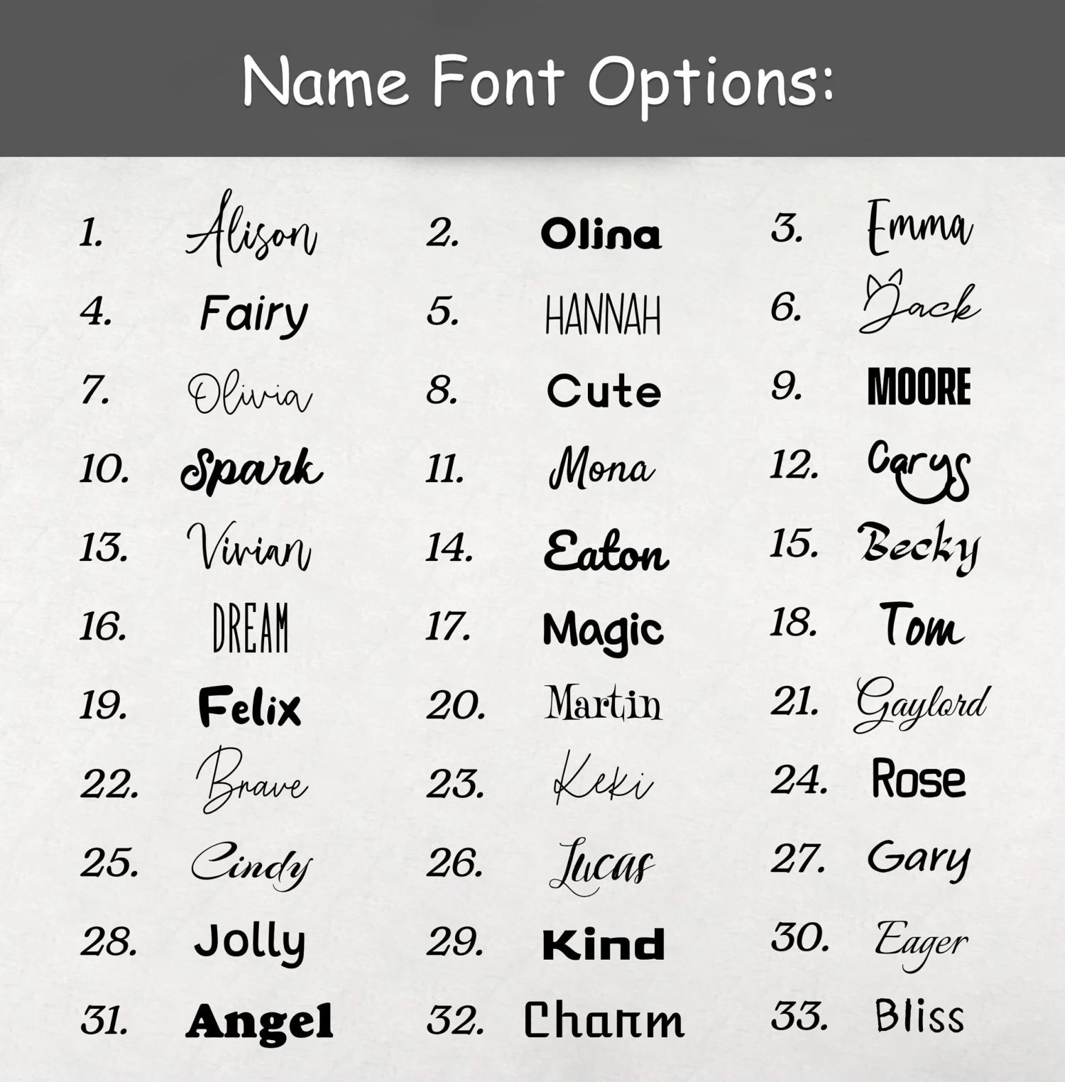 Select your background color option and size from the drop-down menu, then leave us a message in the personalized box and print the desired NAME and FONT on the blanket.