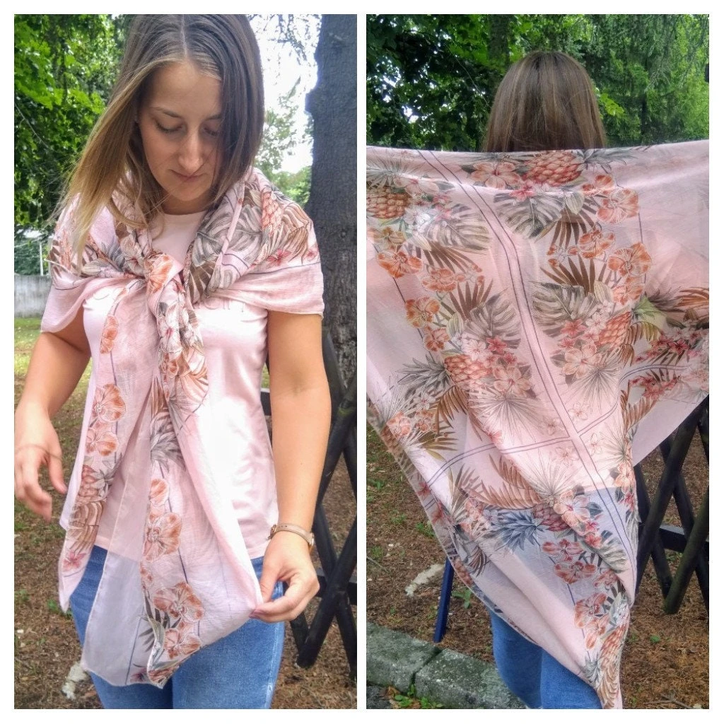 Be the first to review “Pink Printed Scarf. Sheer Head Bohemian Autumn Bridesmaid Modern Wing Floral Scarf. Christmas Gift.” Cancel reply