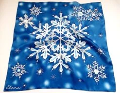 Christmas Silk Scarf Handpainted 36×36 Inches, Blue Head Scarf Silk, Neck Scarf, Gift For Women