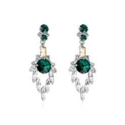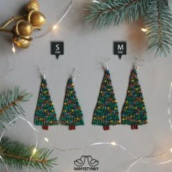 Christmas Tree Earrings Beaded Green Xmas Gift Earrings Statement Crystal New Year Jewelry