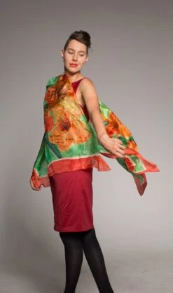 Silk Satin Shawl- Marsala Morn, Hand Painted Scarf, Bridal Wrap, Christmas Gifts For Mom