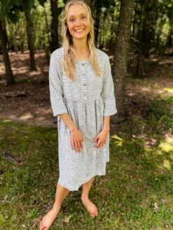 Linen Dress With Snaps, Sustainable Women’s Clothing, Mama Dress, MODESTO, Christmas Gift For Her