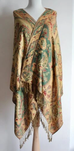 Gold Rose Floral Pashmina Shawl Wraps -Dauble Sided Gold Floral Shawl – Christmas Gift For Woman