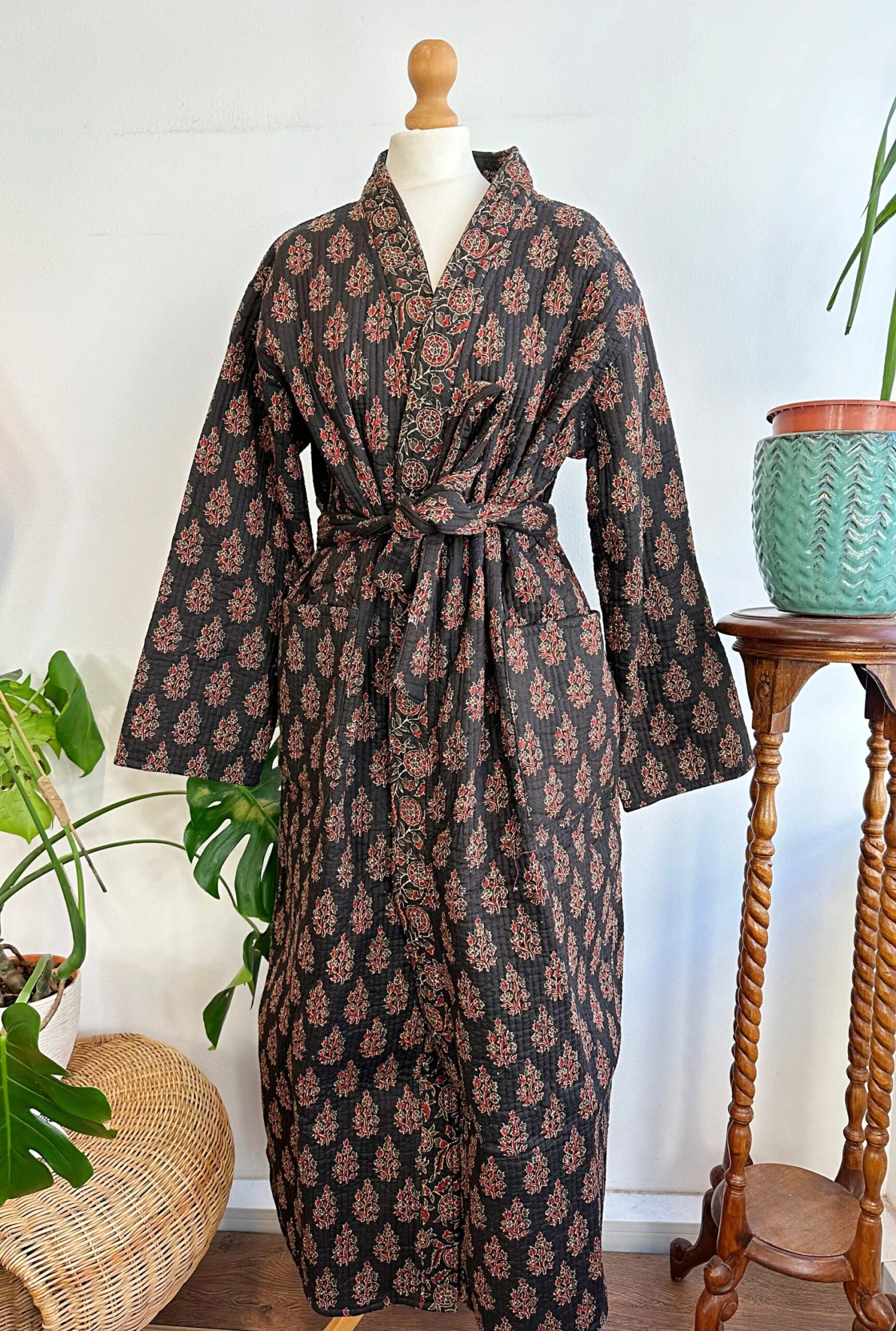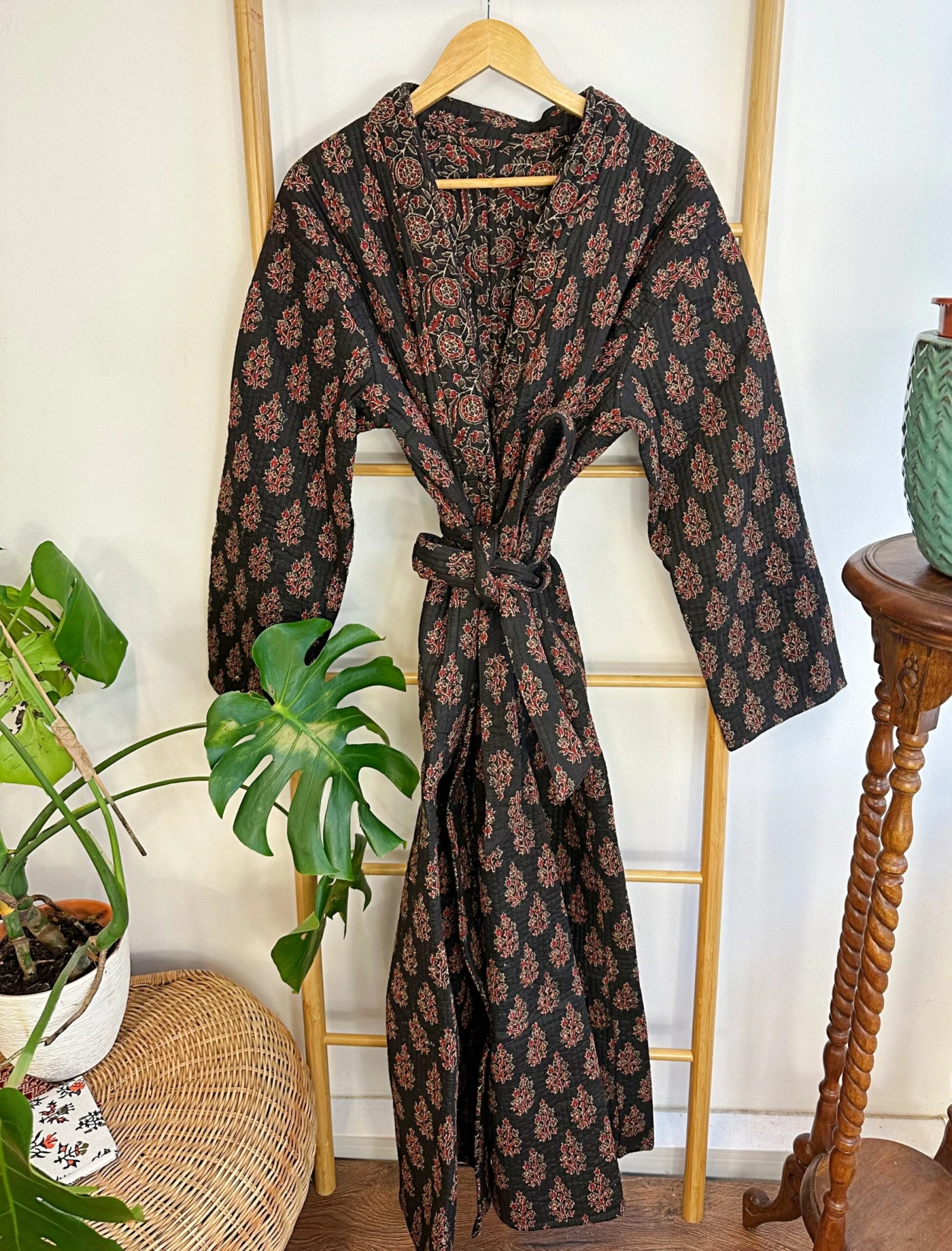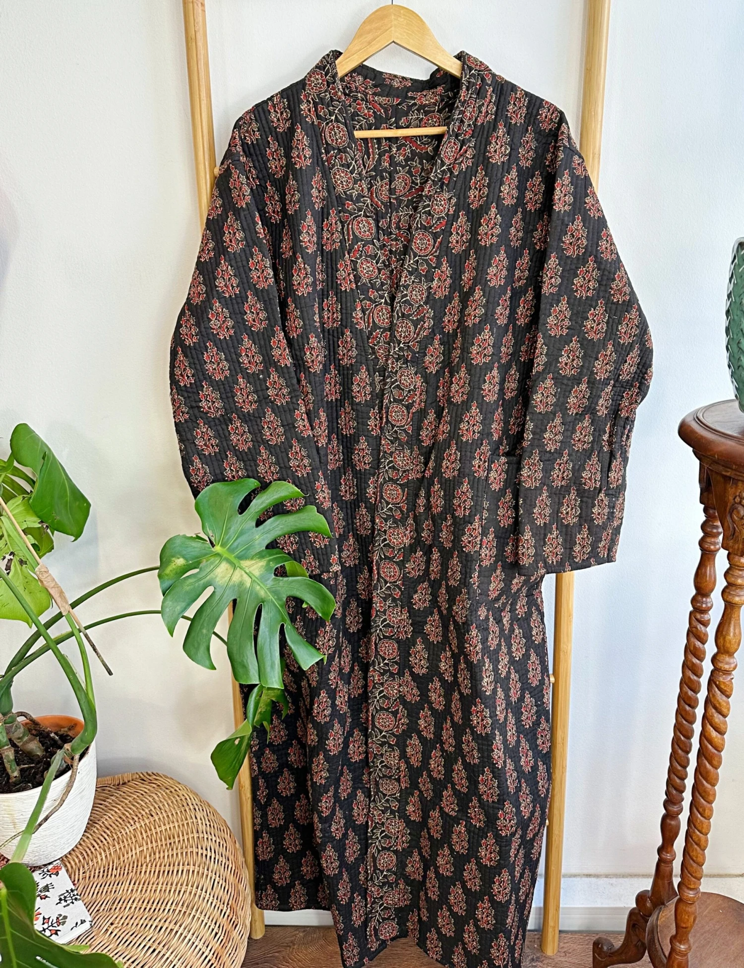 Be the first to review “Quilted Unisex Pure Cotton Reversible Long Autumn Winter Dressing Kimono Robe | Classic Black Red Mughal Motif Stripe | Christmas Love Gift” Cancel reply