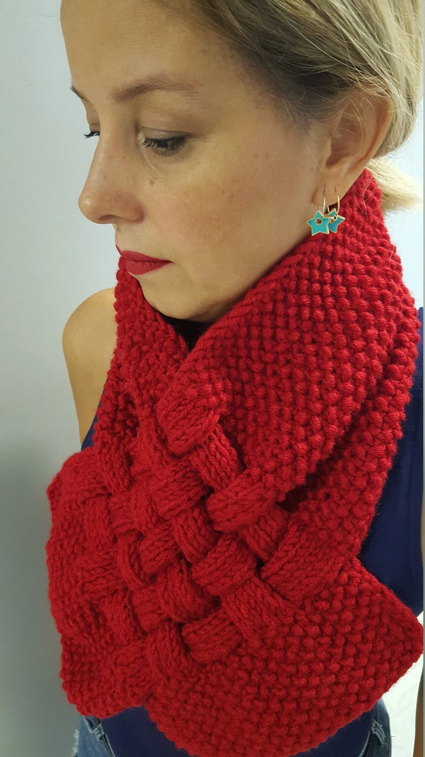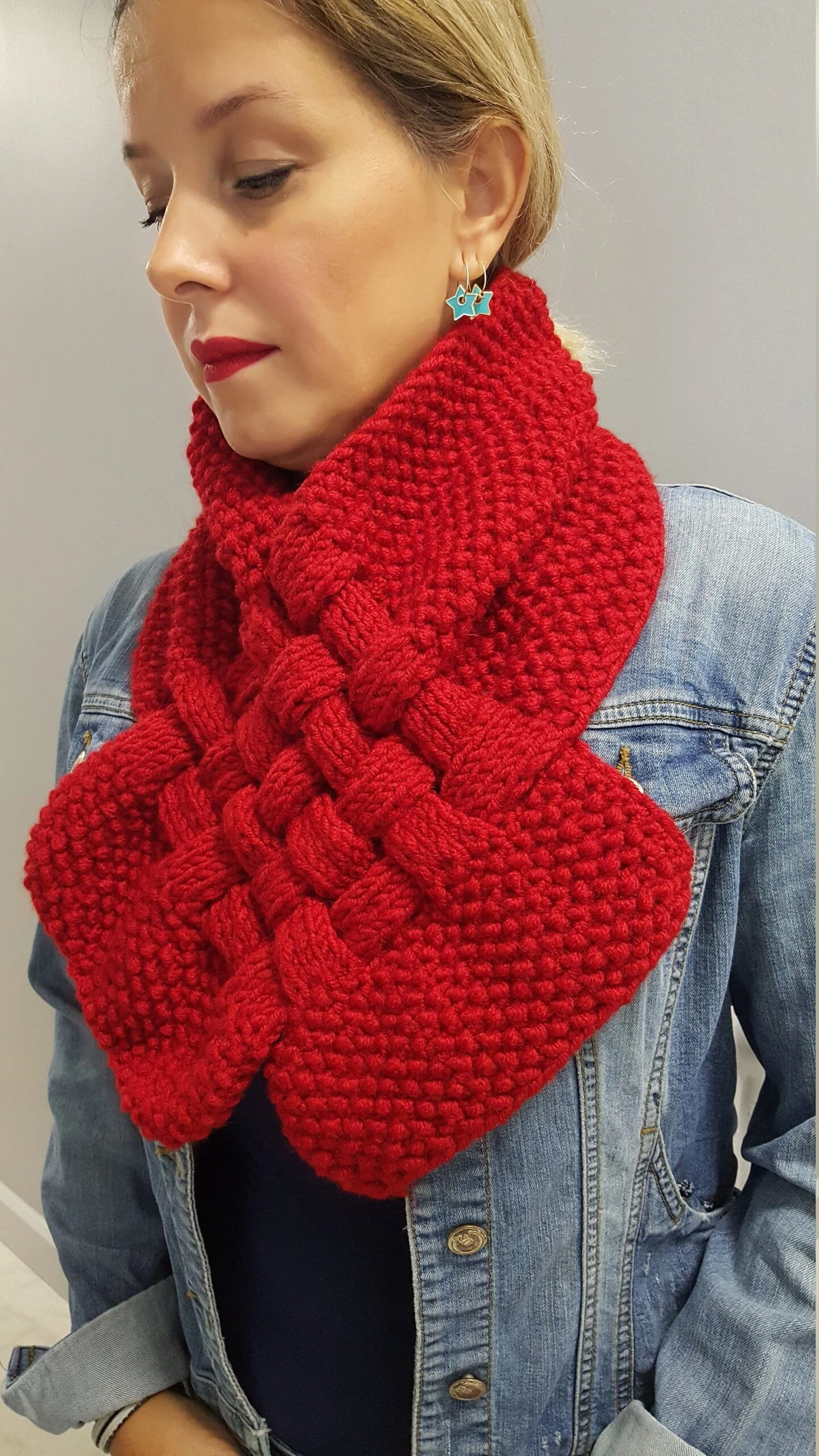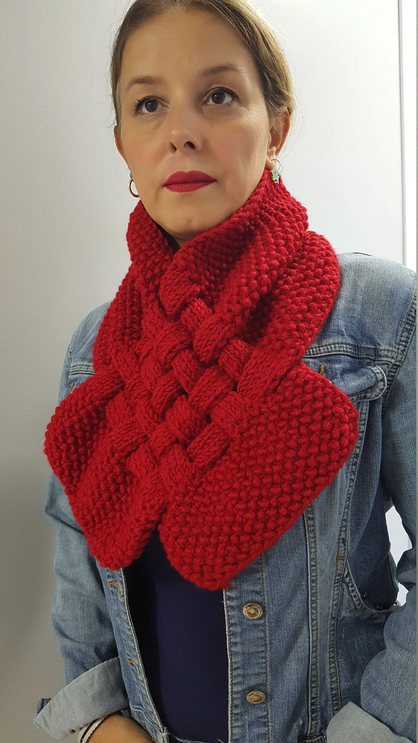 This beautiful knitted red scarf is perfect for the changing weather and will be fun to wear all winter time.