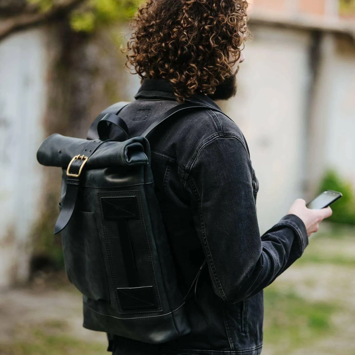 A combination of expert craftsmanship, vintage elements and functionality gives this backpack a traditional and contemporary style. Made with quality cowhide leather that is both supple and durable, it comes with a roll-top design and a roomy, denim-lined interior to provide versatile and ample storage. With added vintage upcycled elements, it is a backpack that meets the urbanite’s desire for the unique and timeless.
