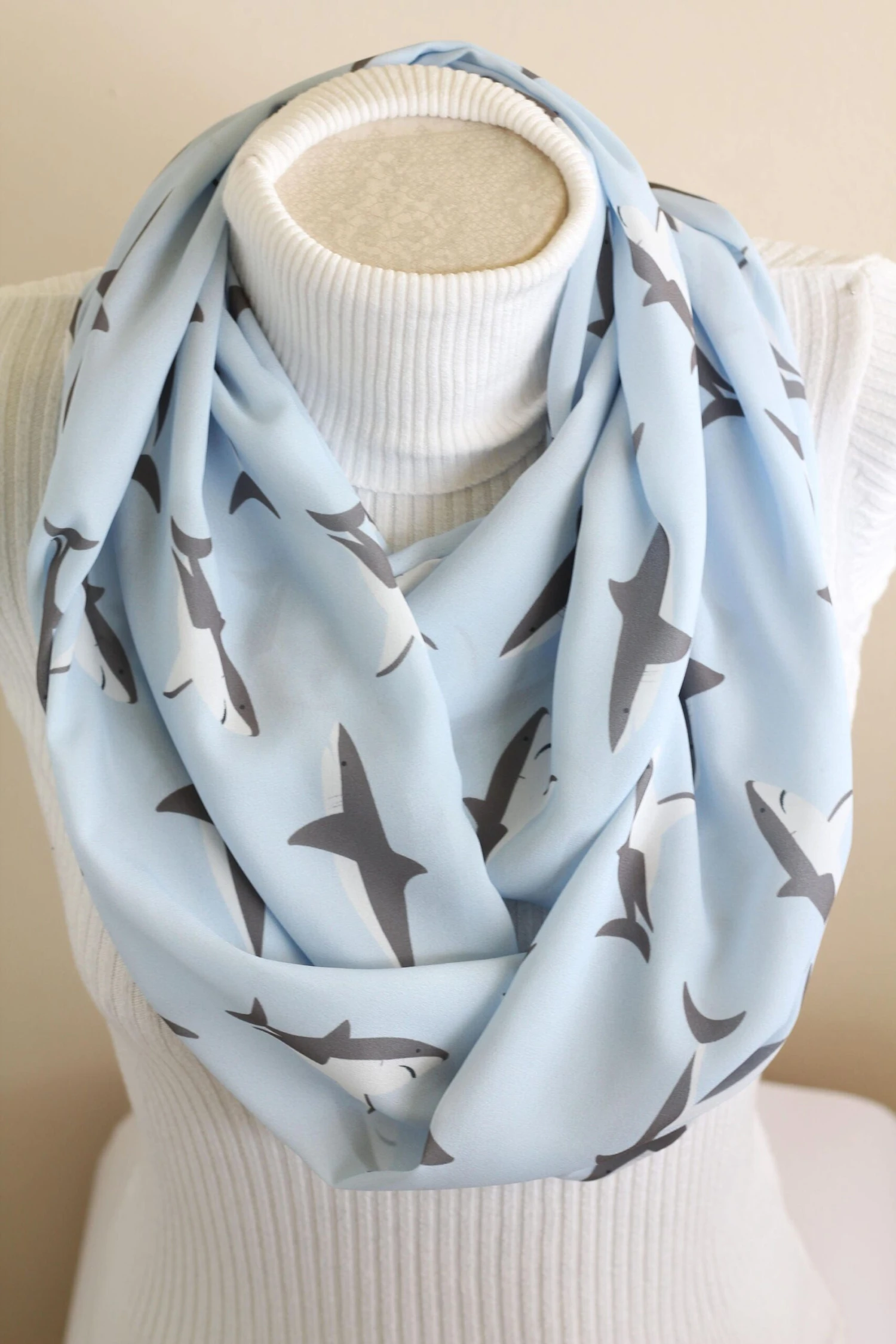 Shark scarf is perfect gift idea as an infinity scarf for shark lovers. It can be retirement gifts, mama shark gift, Christmas gift.