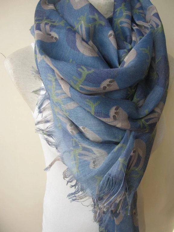 Sloth scarf EXPRESS SHIPPING 2023 Holiday Fashion – Christmas Gift – Fashion Accessory – Women Accessory – Gift For Her – gift For Him Unisex scarves