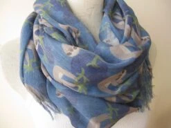 Sloth scarf, sloth print denim blue gauze linen fabric oversize shawl scarf-Scarves2012 fashioN-woman-MAN SCARVES ,Turkey Turkish scarves
