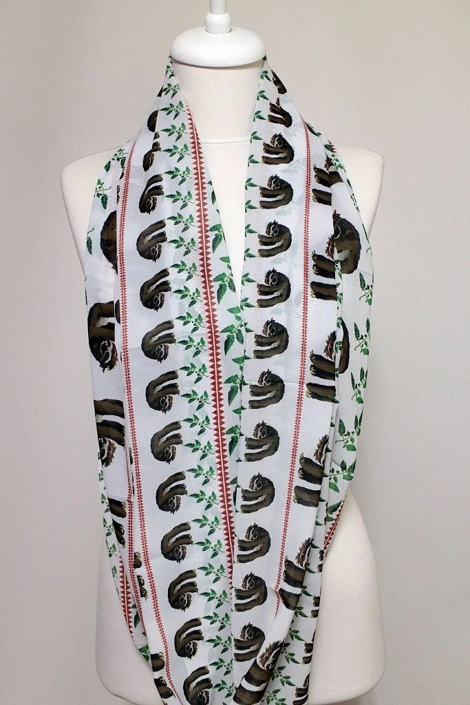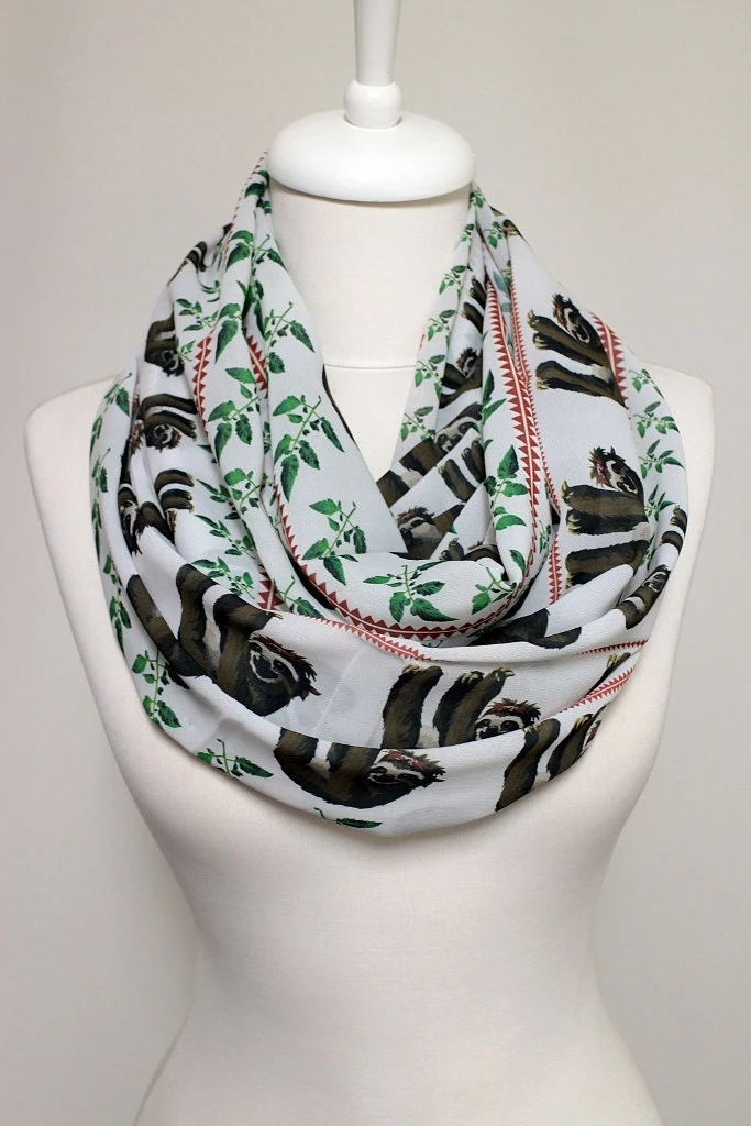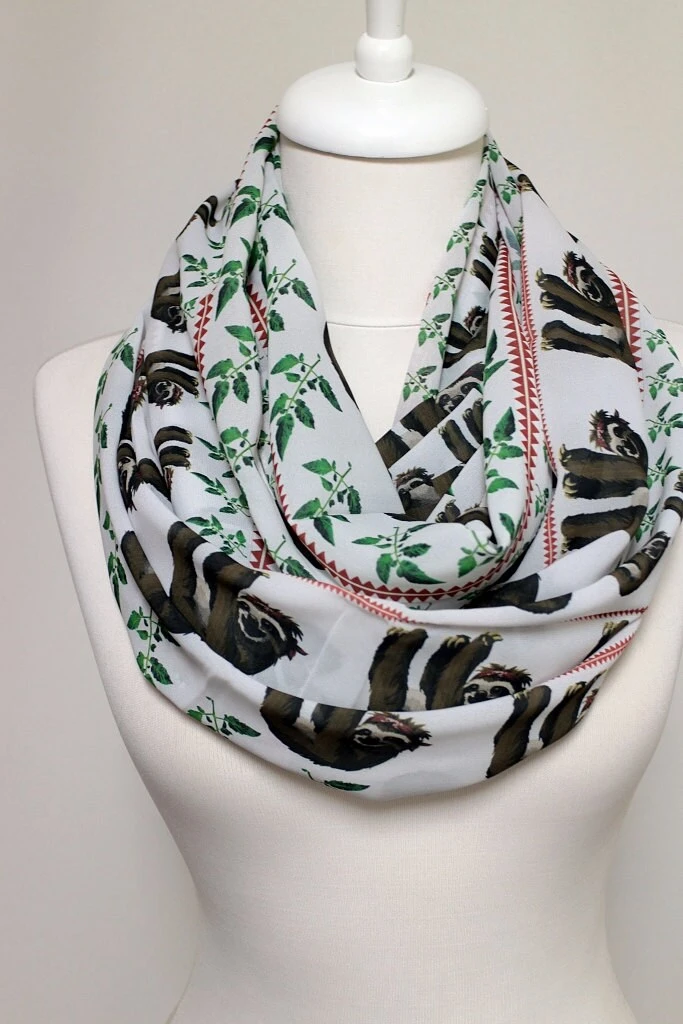 Sloth pattern Chiffon Infinity scarf, Circle Scarf, Loop Scarf, Scarves, Shawls, Spring – Fall – Winter – Summer fashion