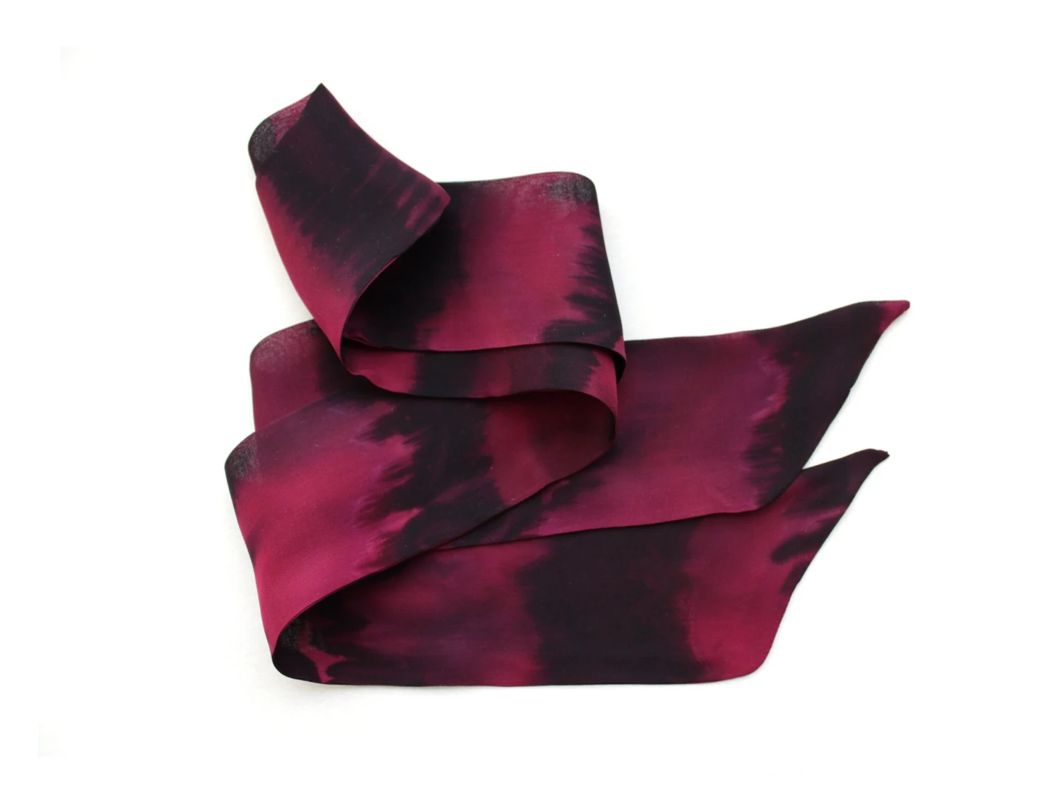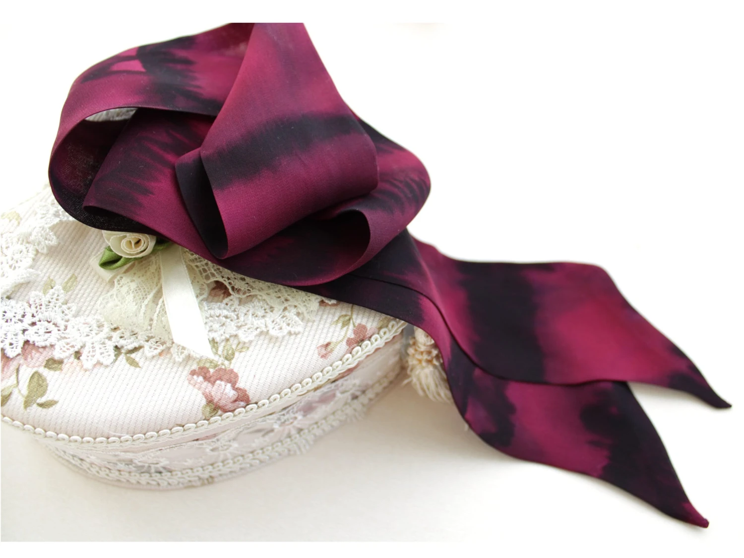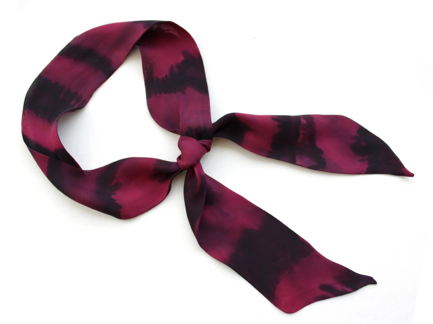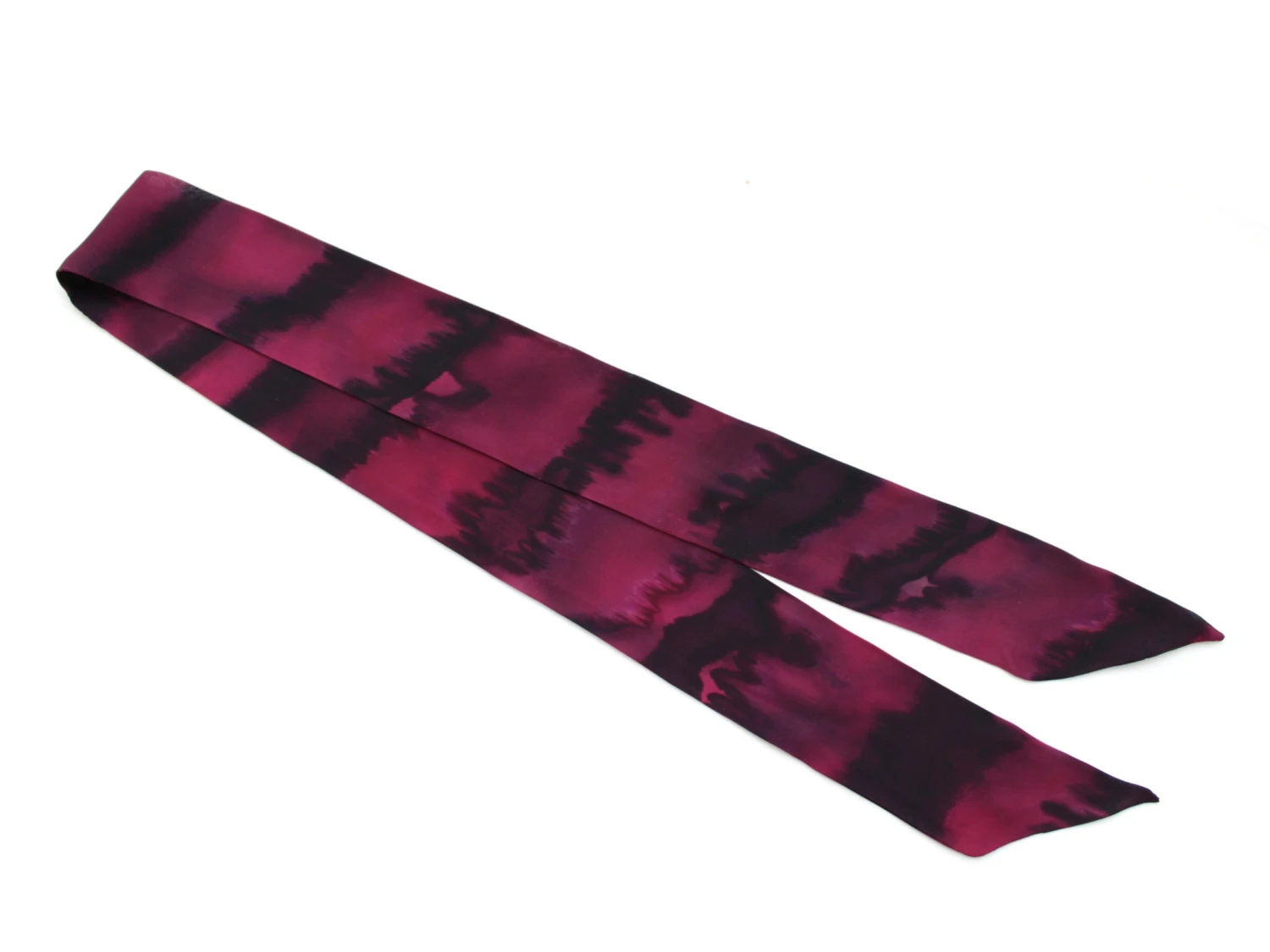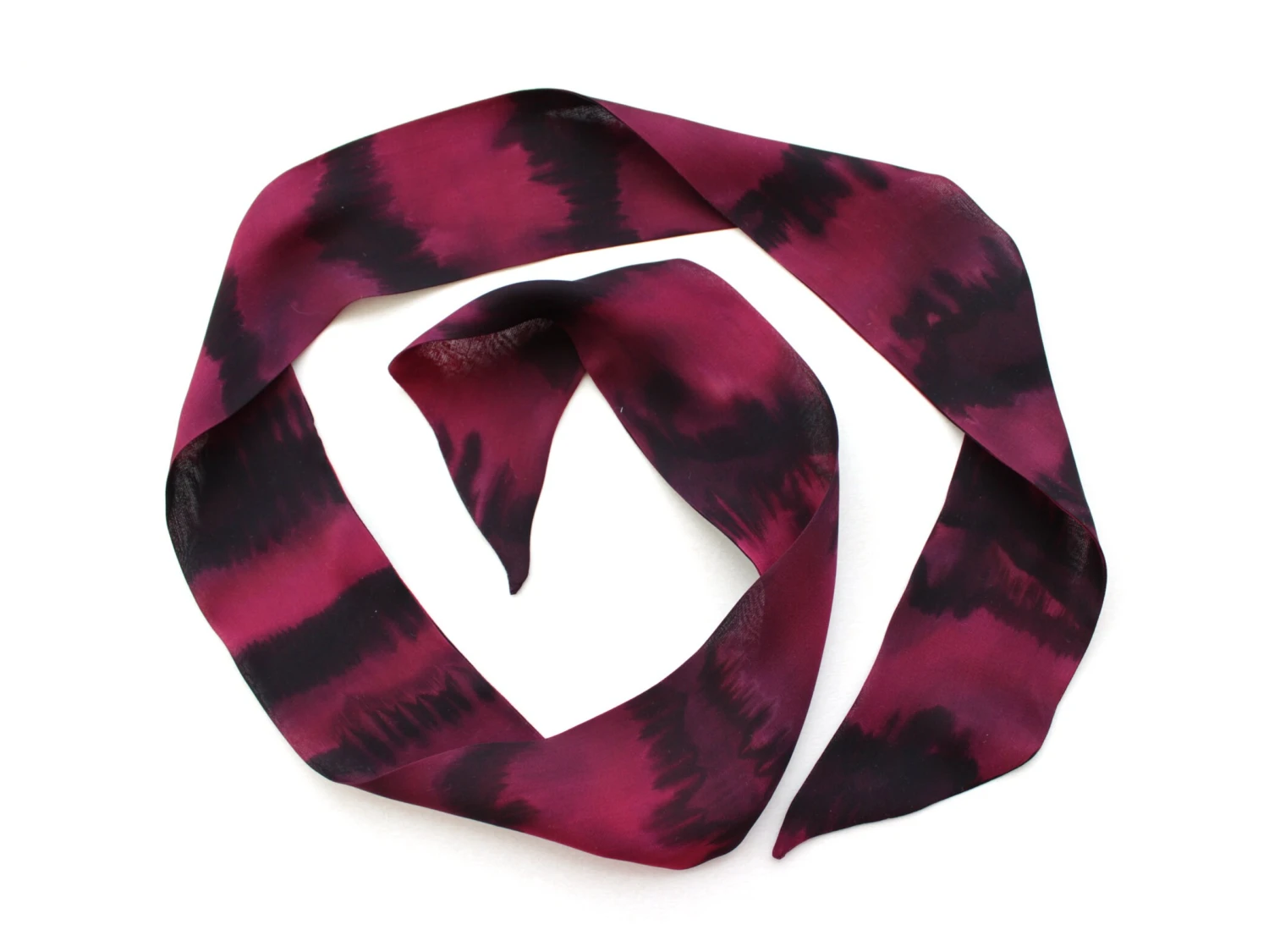Burgundy silk chiffon skinny scarf for hair, purse accessory, headband, choker scarf, neckerchief, head ribbon, double faced, hand-painted.