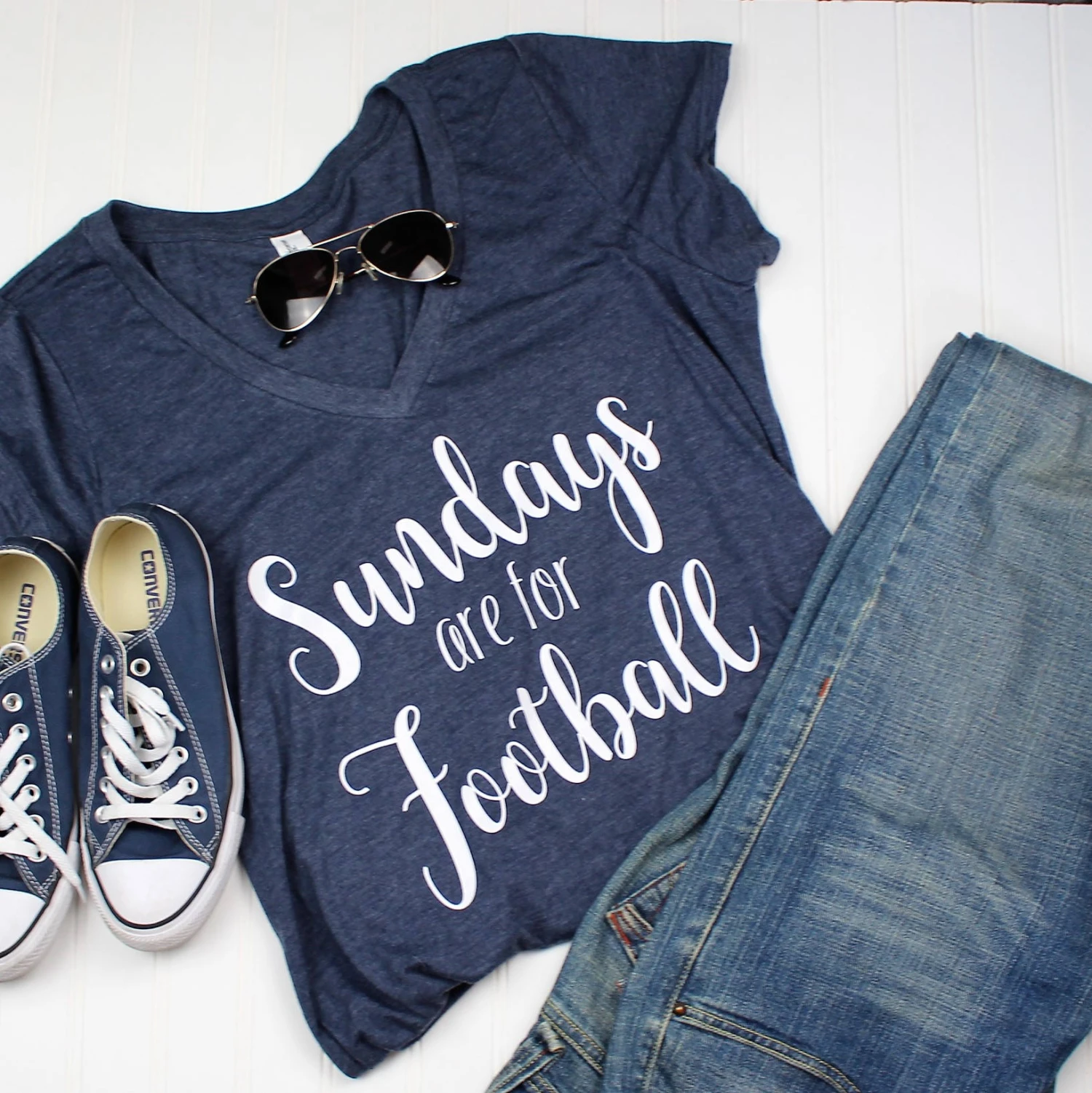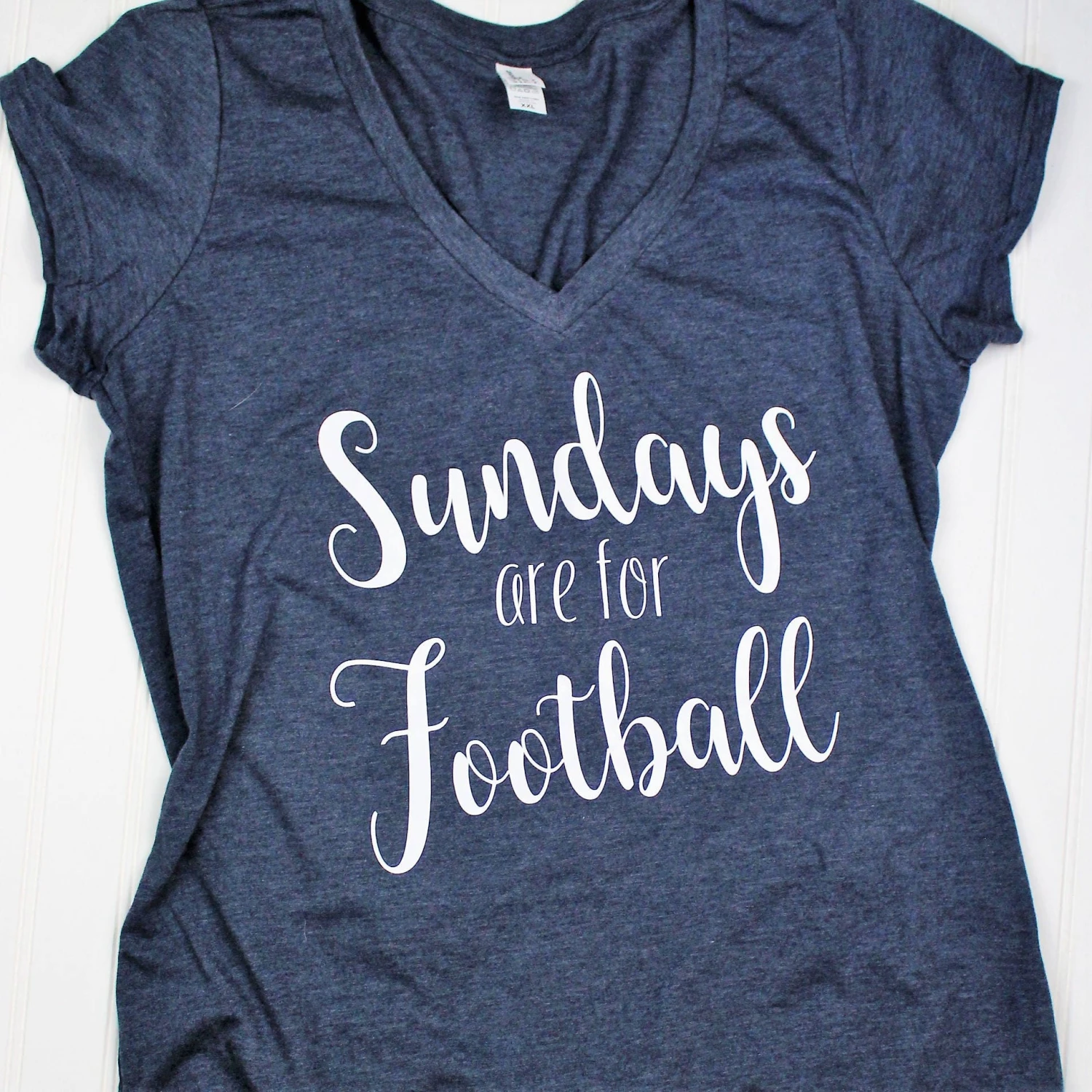 Sundays Are For Football Navy Blue VNeck Shirt For Women With White Design, Womens Football Shirt, Superbowl Shirt, Christmas Gift For Mom