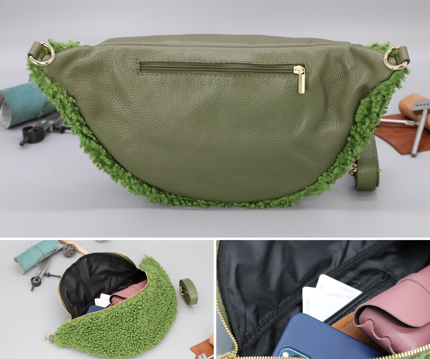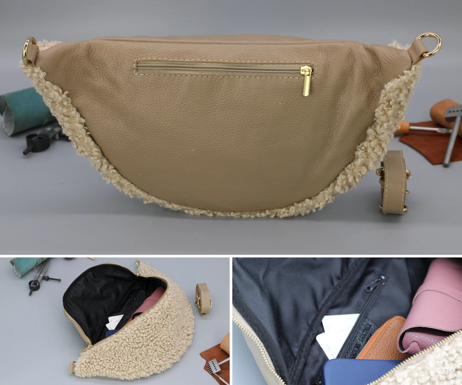 Our bags are made of high quality leather and teddy fell, with careful and skillful workmanship.