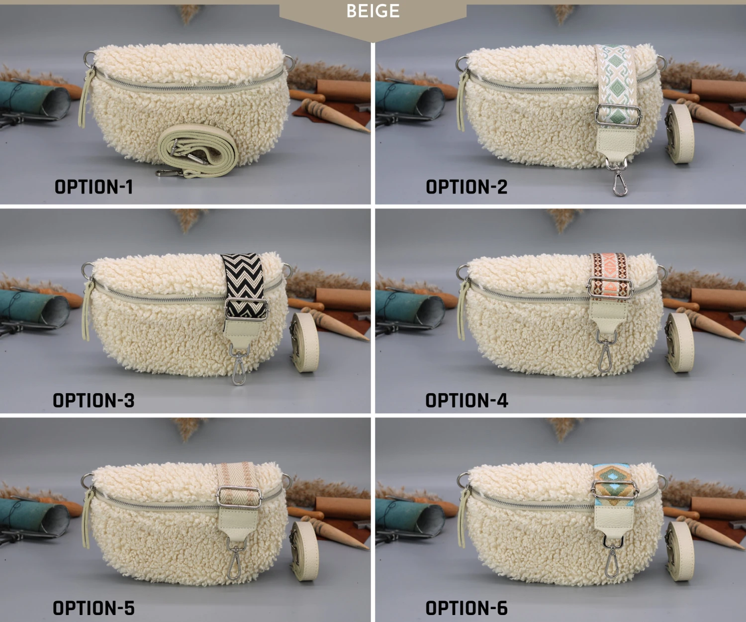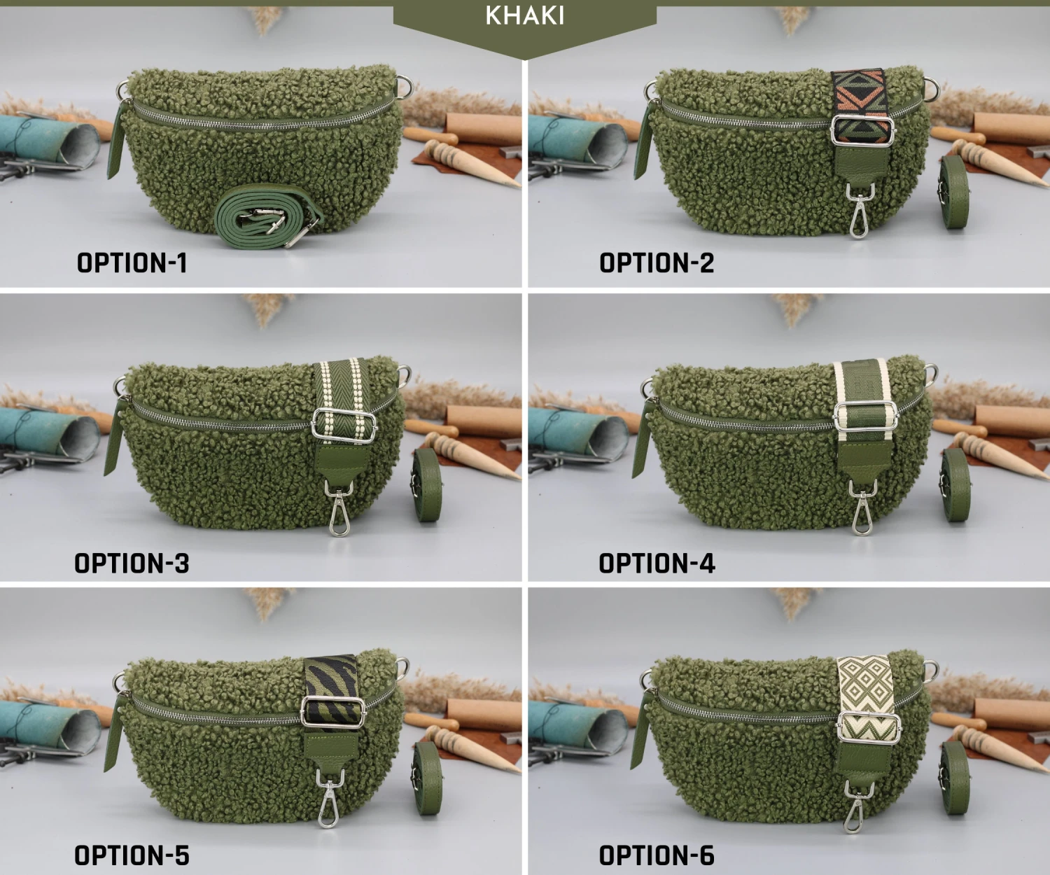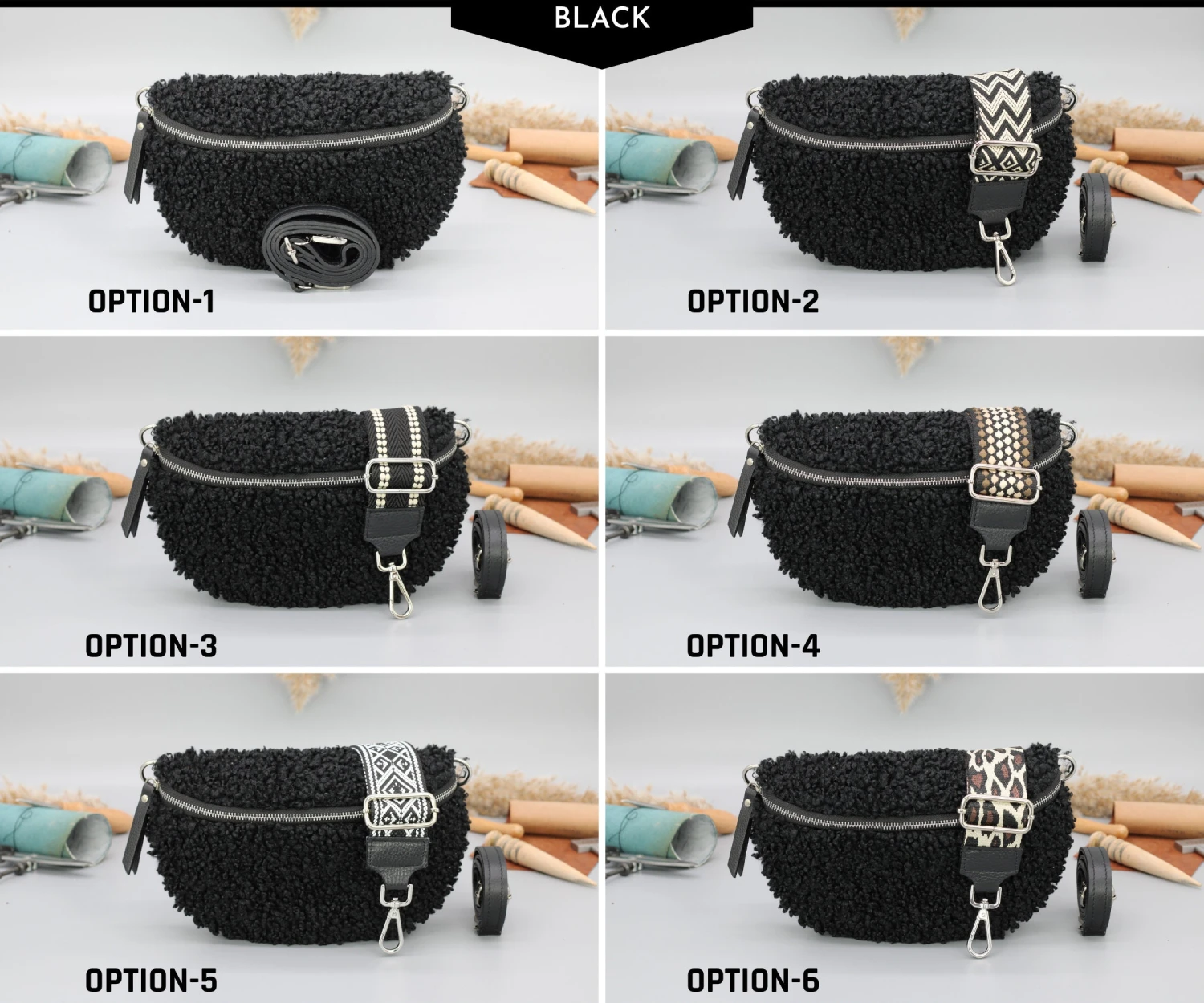 Other options are for an extra patterned thick strap to be sent with the bag.