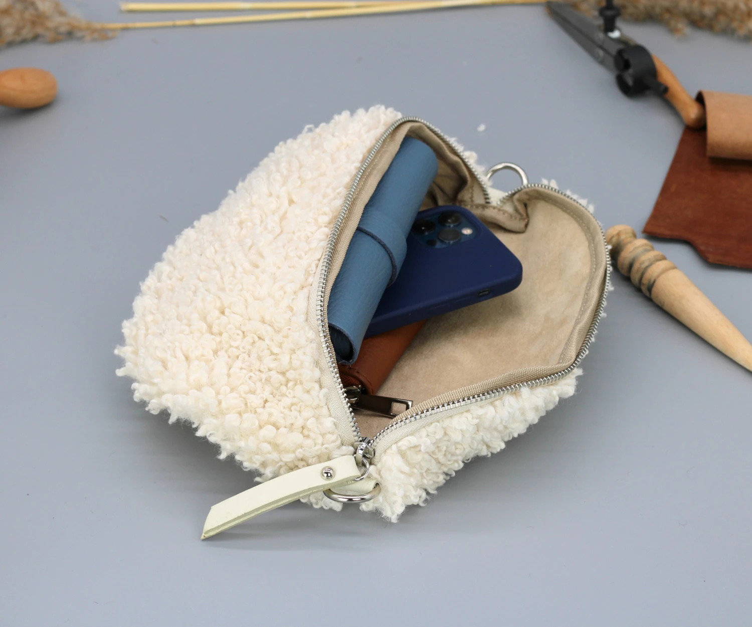 Materials: teddy, leather