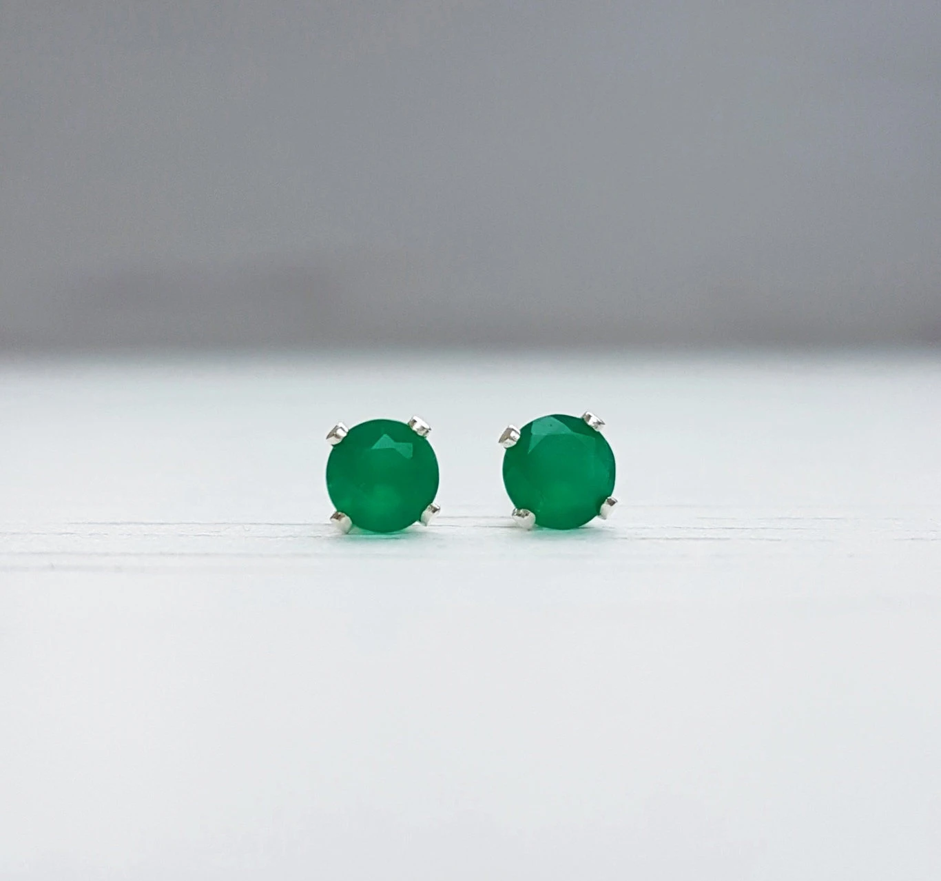 Although they are just 4mm wide, these little Green Onyx stud earrings create an eye-catching pop of saturated colour to effortlessly enhance your look, are packed with light-reflecting facets and are bound to be noticed! You really can’t go wrong with a tiny, sparkling gemstone stud — so useful and so wearable.