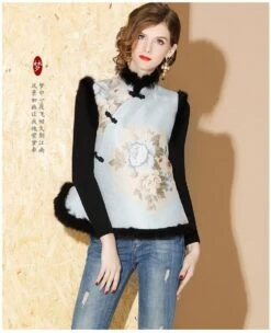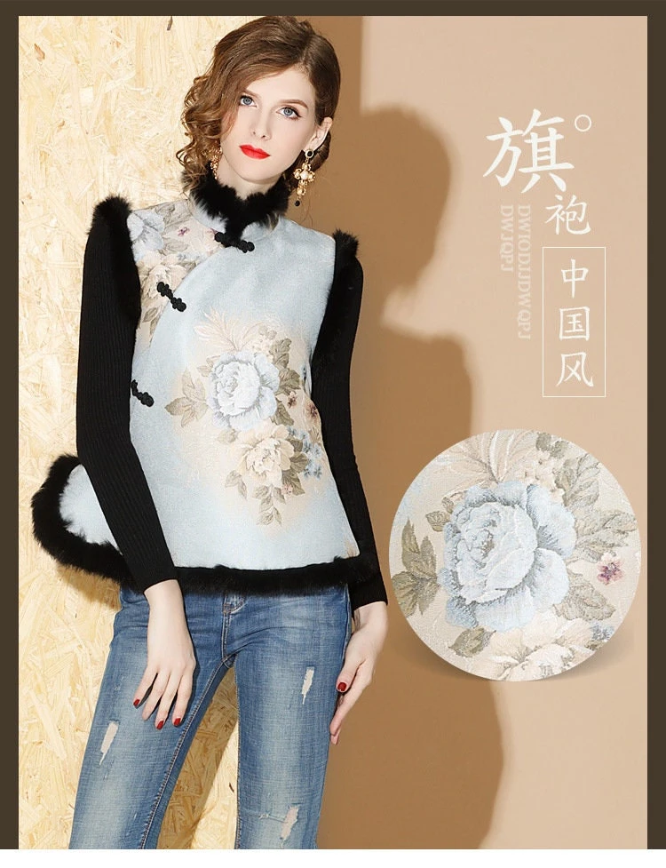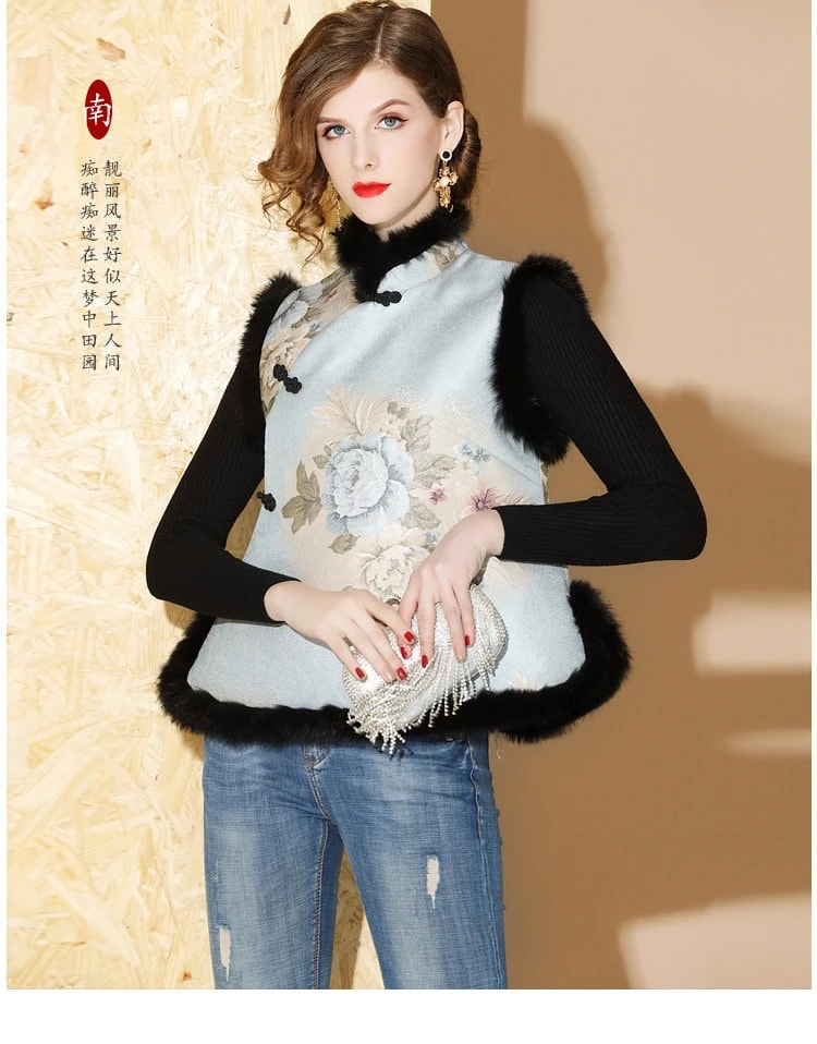 Soft material feel, Hairy Warm Padded with Cotton; Unique Tang Jacket full of Happy Celebration Elements, Pankou Button in front side as closure, Very elegant and warm.
