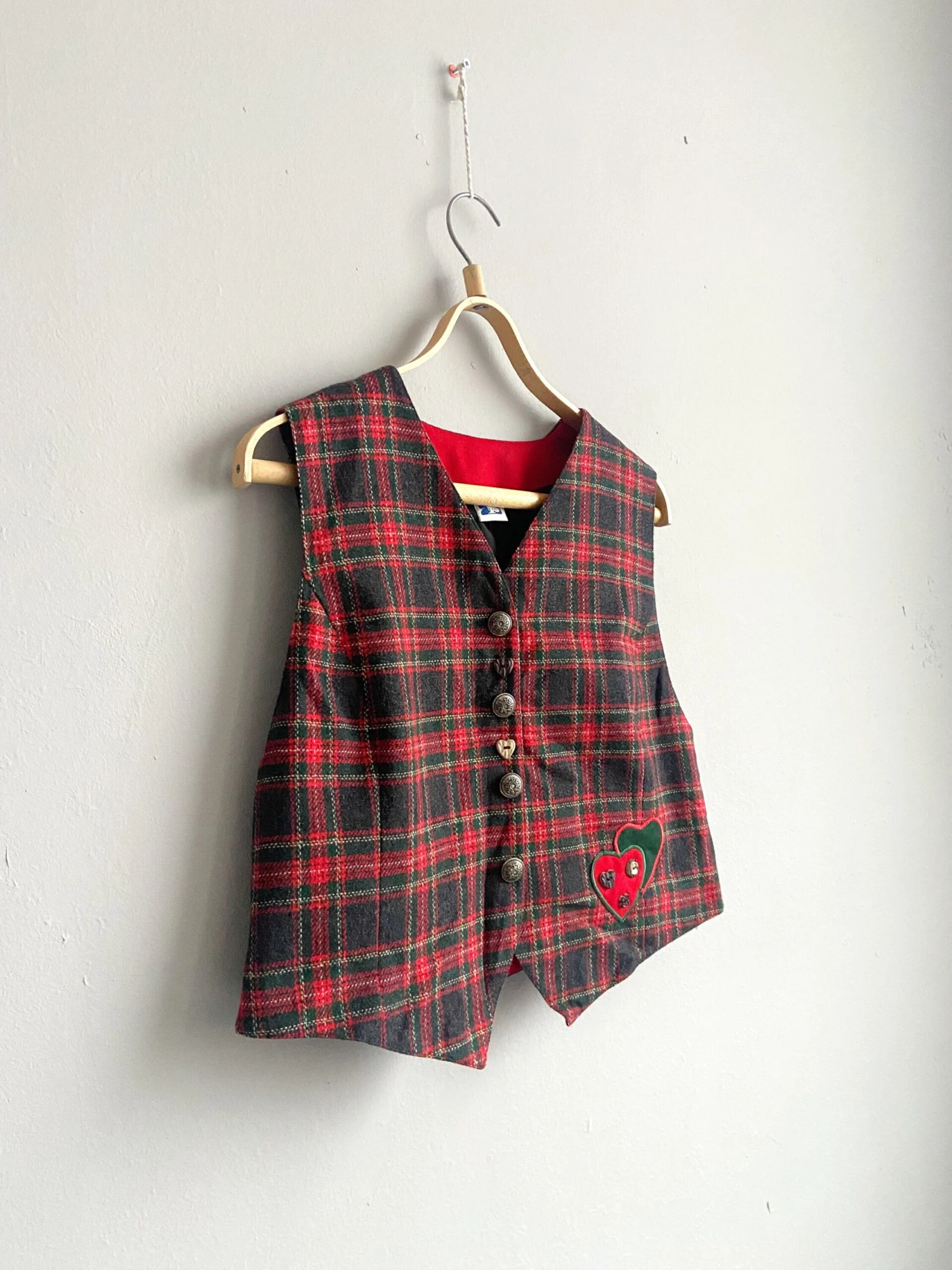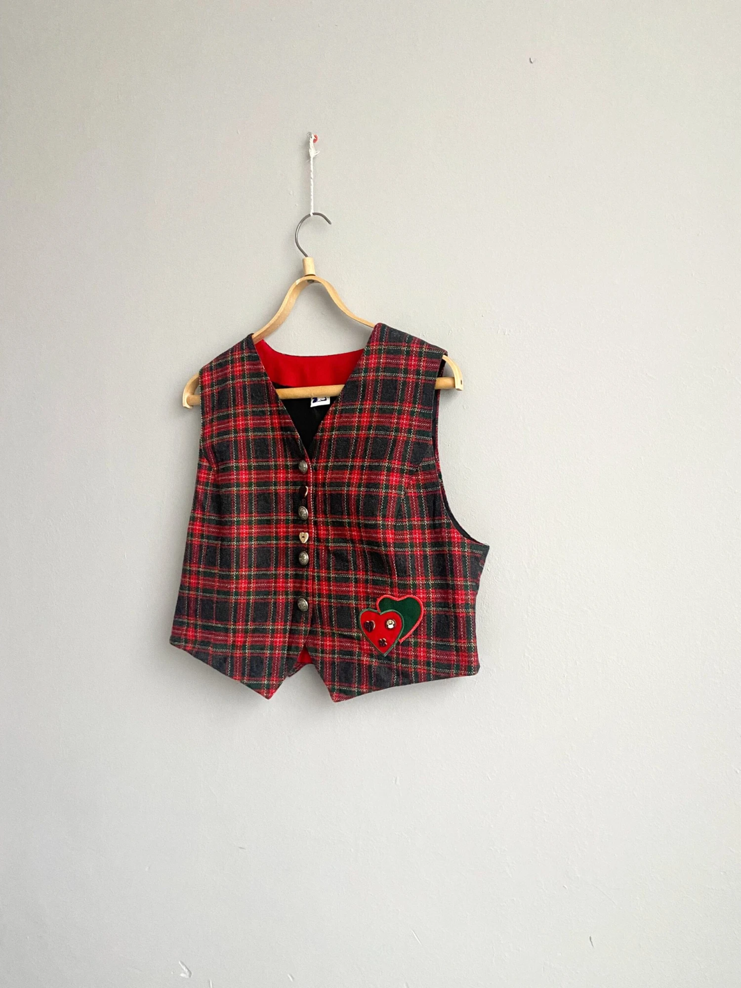 Vintage 90s Red Tartan Vest Women Christmas Waistcoat Red Checkered Vest Red Plaid Vest M Heart Tartan Vest Women Red Waistcoat Tartan Top