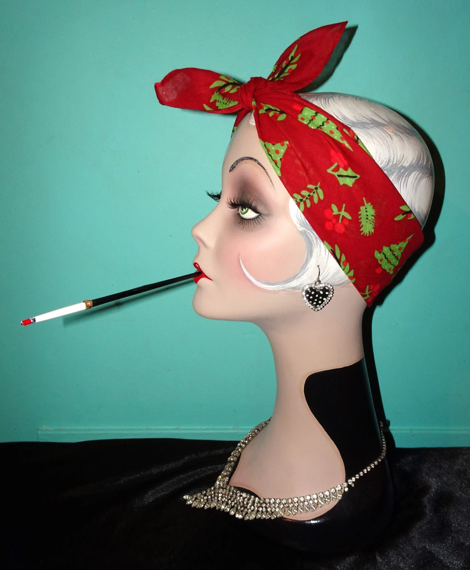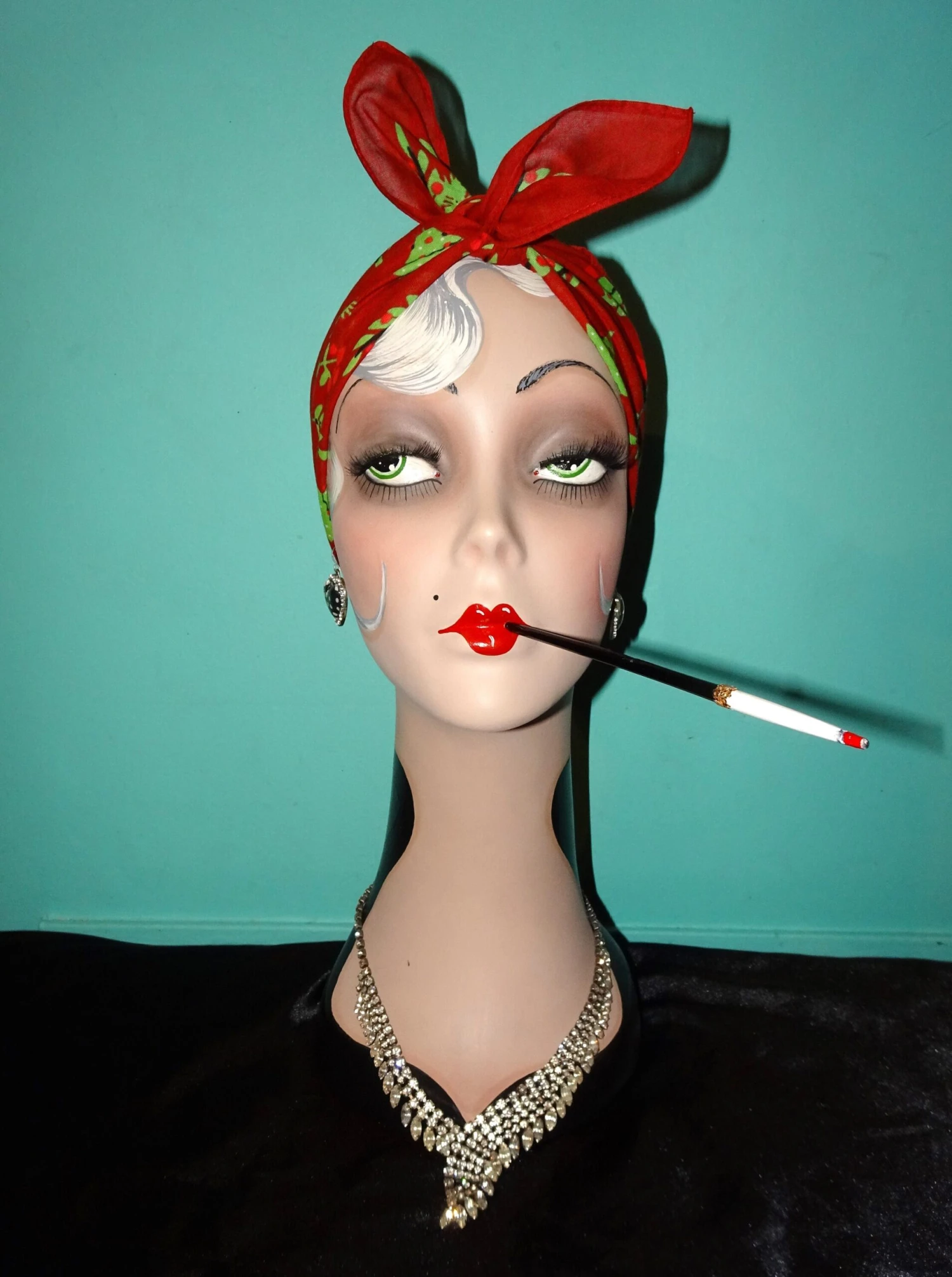 This is one super cute and stylish vintage Christmas bandana that is sure to make you the toast of the town. This darling item features:
