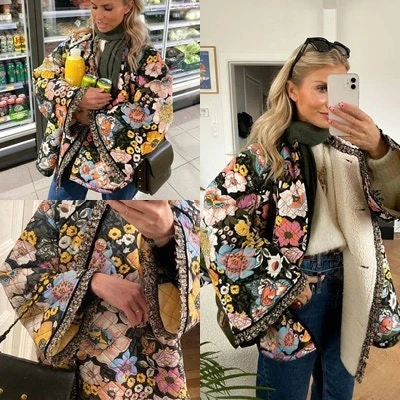 Winter Quilted Sherpa Lined Jacket Vintage Patchwork Jacket Coat Modern Floral Jacket Quilted Jacket Coat Christmas Gift