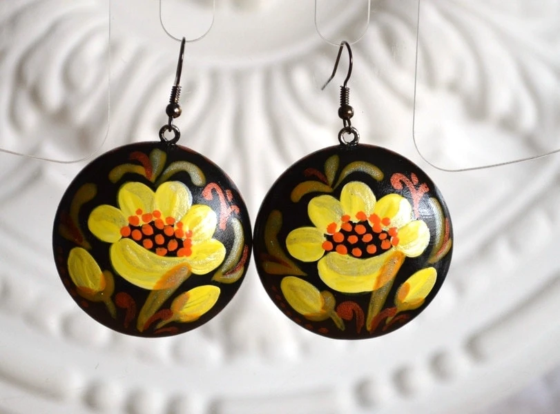 Be the first to review “Yellow Black Earrings Handpainted Flower Jewelry Handcrafted Christmas Gift Wedding Yellow Flowers, Eco Folk Earrings Unique Gift Girlfriend” Cancel reply